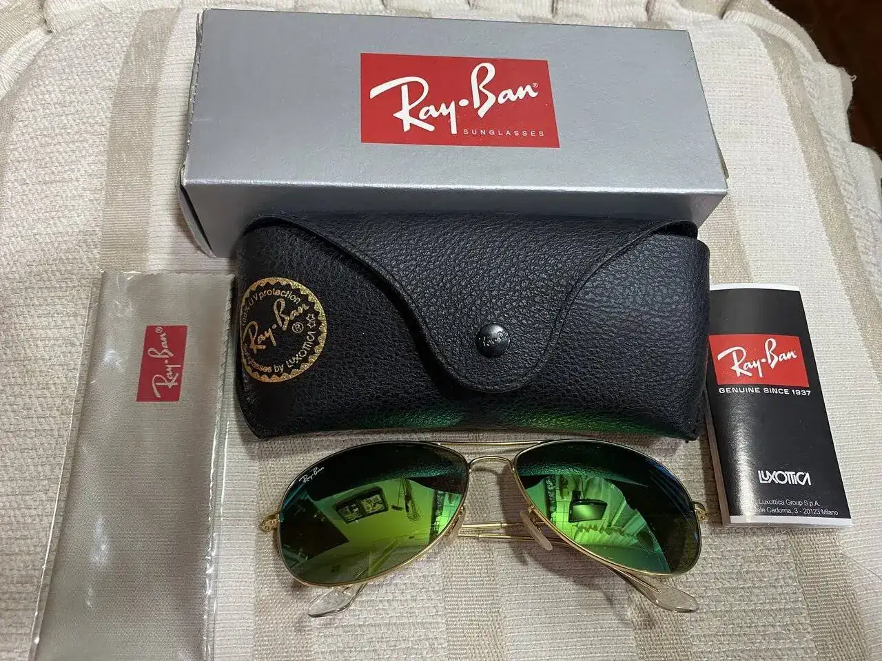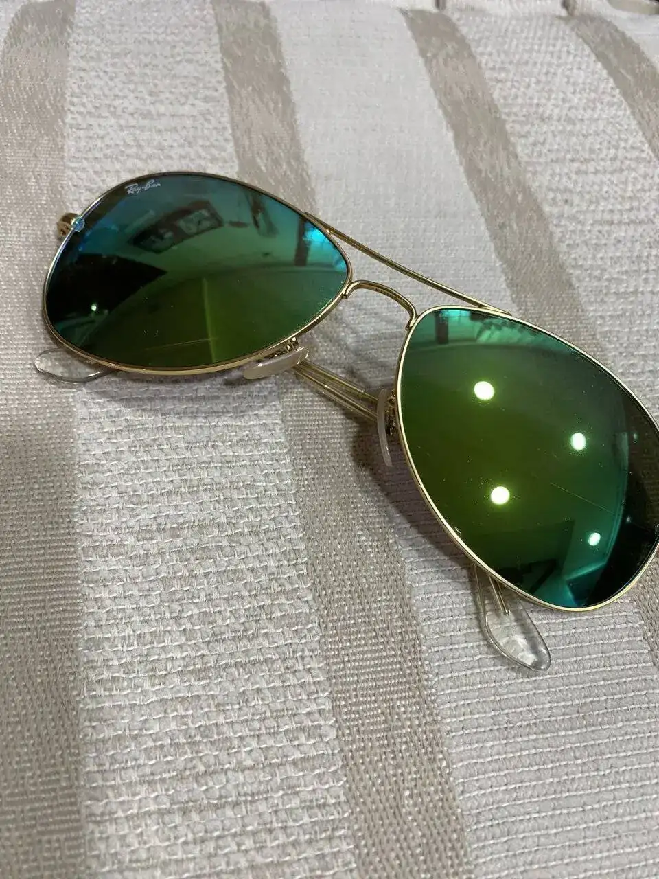 Gafas Ray ban sin estrenar. Modelo 3362. Montura dorada y lentes verdes. Su precio es de 80€ y el envío mediante el método que desee el comprador correría de su cuenta.