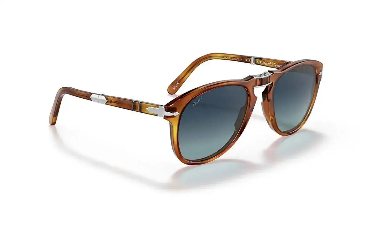 Saco para venta estás espectaculares gafas Persol Steve McQueen Ref PO0714SM, en color Light habana y Cristal azul polarizado con gradiente.
