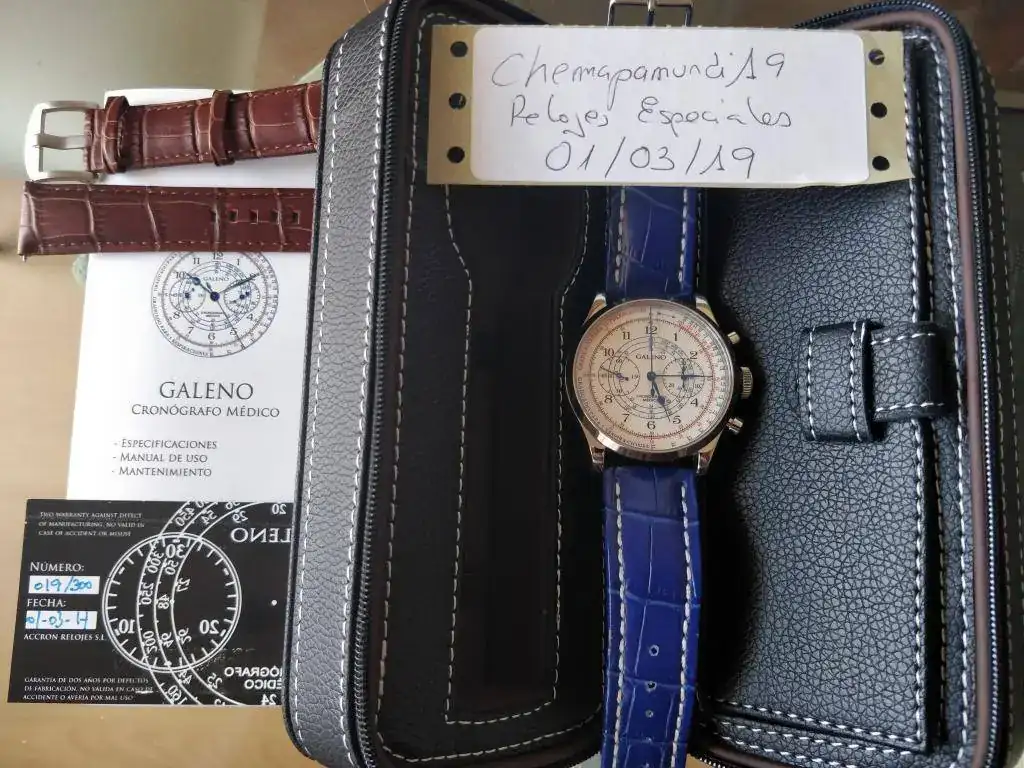 HOLA A TODOS, DEBIDO AL EXCESO DE RELOJES Y QUERER REDUCIR EL NUMERO YA QUE NO TENGO TIEMPO PARA PONERMELOS TODOS, SACO A LA VENTA MI GALENO. EL RELOJ ESTA PERFECTO, IMPOLUTO Y PODRÍA PASAR POR NUEVO (COMO PUEDE OBSERVARSE EN LAS FOTOGRAFÍAS ADJUNTAS). EL RELOJ LO ENTREGO CON SU DOTACIÓN COMPLETA, ES DECIR, CAJA ESTUCHE, MANUAL, TARJETA DE GARANTÍA CON FECHA 01 DE MARZO DE 2017, CORREA CROCO MARRON ORIGINAL DEL RELOJ Y REGALO CORREA AZUL CROCO AZUL QUE LE QUEDA DE MARAVILLA (AMBAS CORREAS A ESTRENAR).