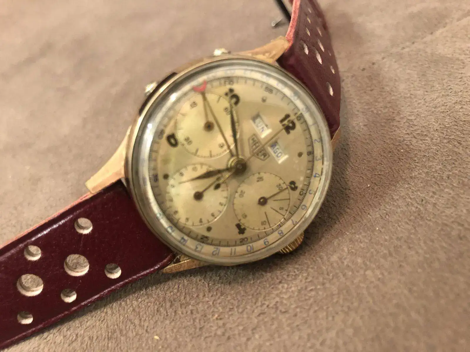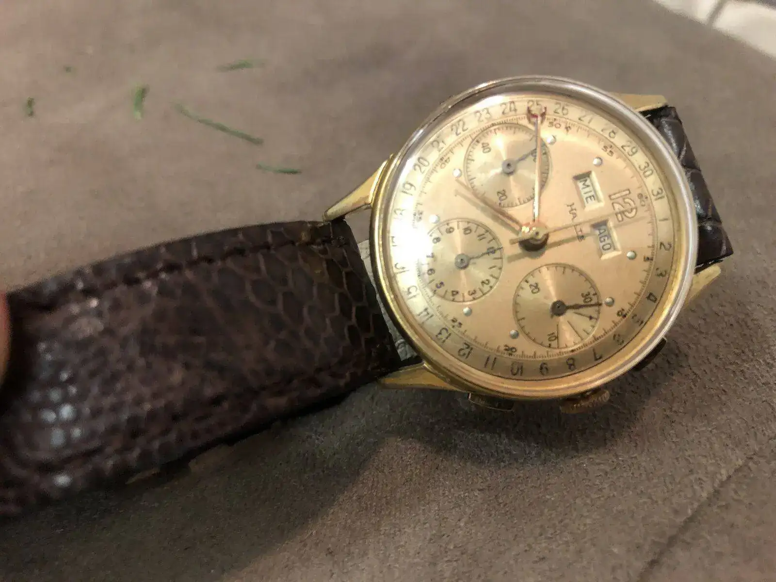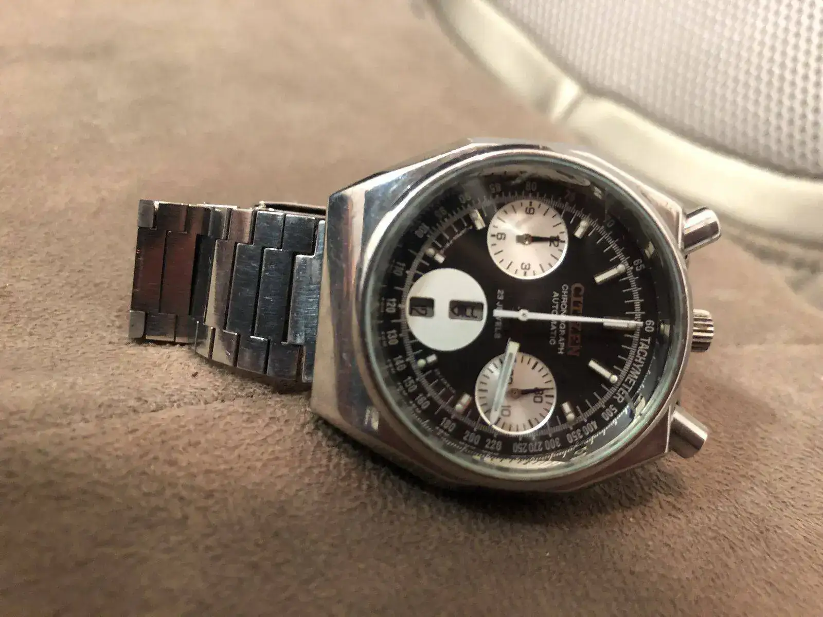 Como últimamente se estuvo tratando en el foro el tema de los relojes con la complicación de cronógrafos mecánicos (a cuerda o automáticos), les propongo crear este hilo con una galería de fotos de los ejemplares que estén en nuestra posesión, brindando además algún pequeño detalle del calibre que tiene su reloj si fuera posible. Inicialmente solo deben estar en esta galería relojes con cronógrafo y de acuerdo al interés que se registre, podemos abrir otro hilo separado de los cronógrafos que no son relojes, conocidos como stopwatch empleados usualmente para medir tiempos en competencias deportivas.