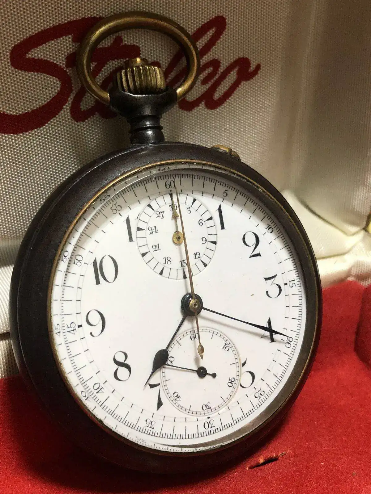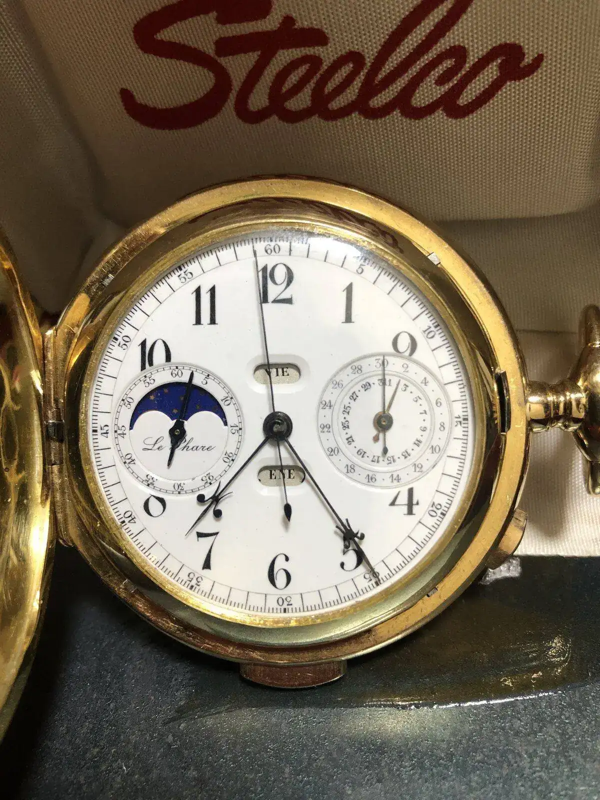 Reloj de bolsillo a cuerda FAMA, calibre 19/9 Minerva, caja enchapada en oro, década de los 1910s.