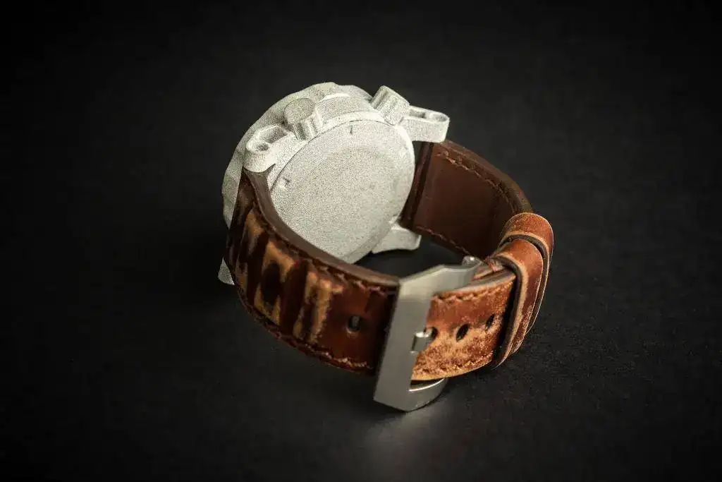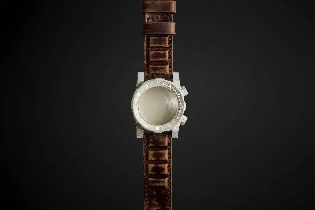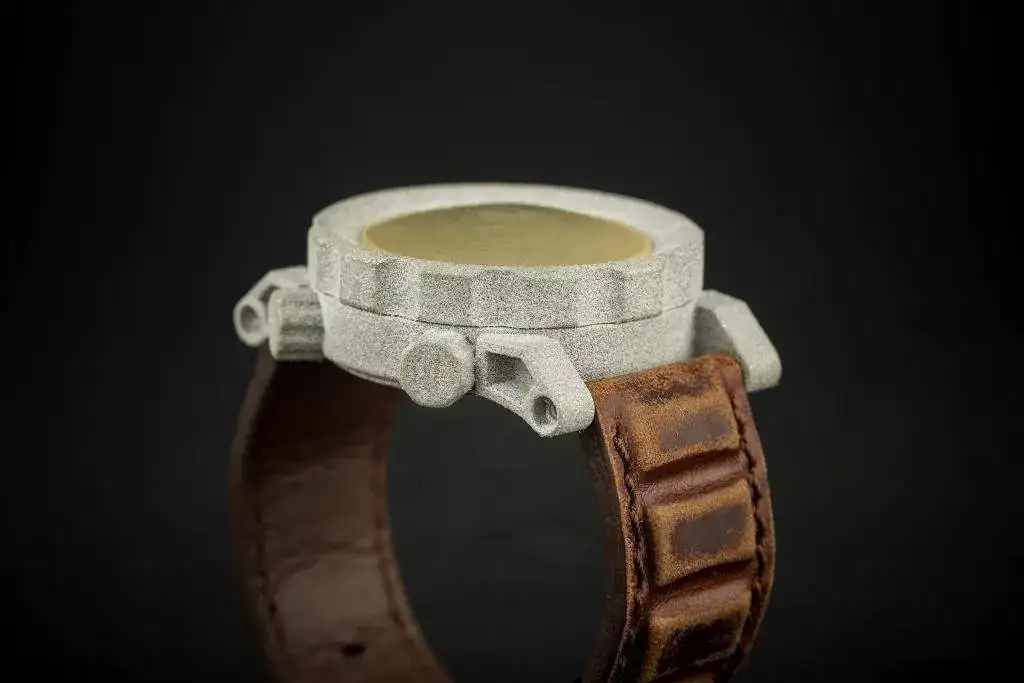 Después de un tiempo de espera os adjuntamos las fotografías del prototipo del Galerna. Está fabricado en lo que se llama plástico-metálico que no es otra cosa que nylon con polvo de aluminio. Le da un aspecto más metálico y real, en este caso "próximo" al tono del acabado del titanio natural. La correa es la que Jacobo ha fabricado en exclusiva para el Galerna y que se ofrecerá como dotación extra.