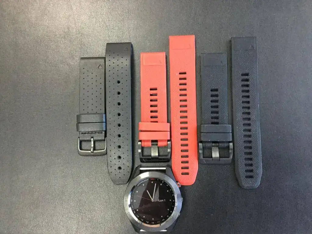 correas: Piel negra original sin utilizar, silicona roja, silicona negra.