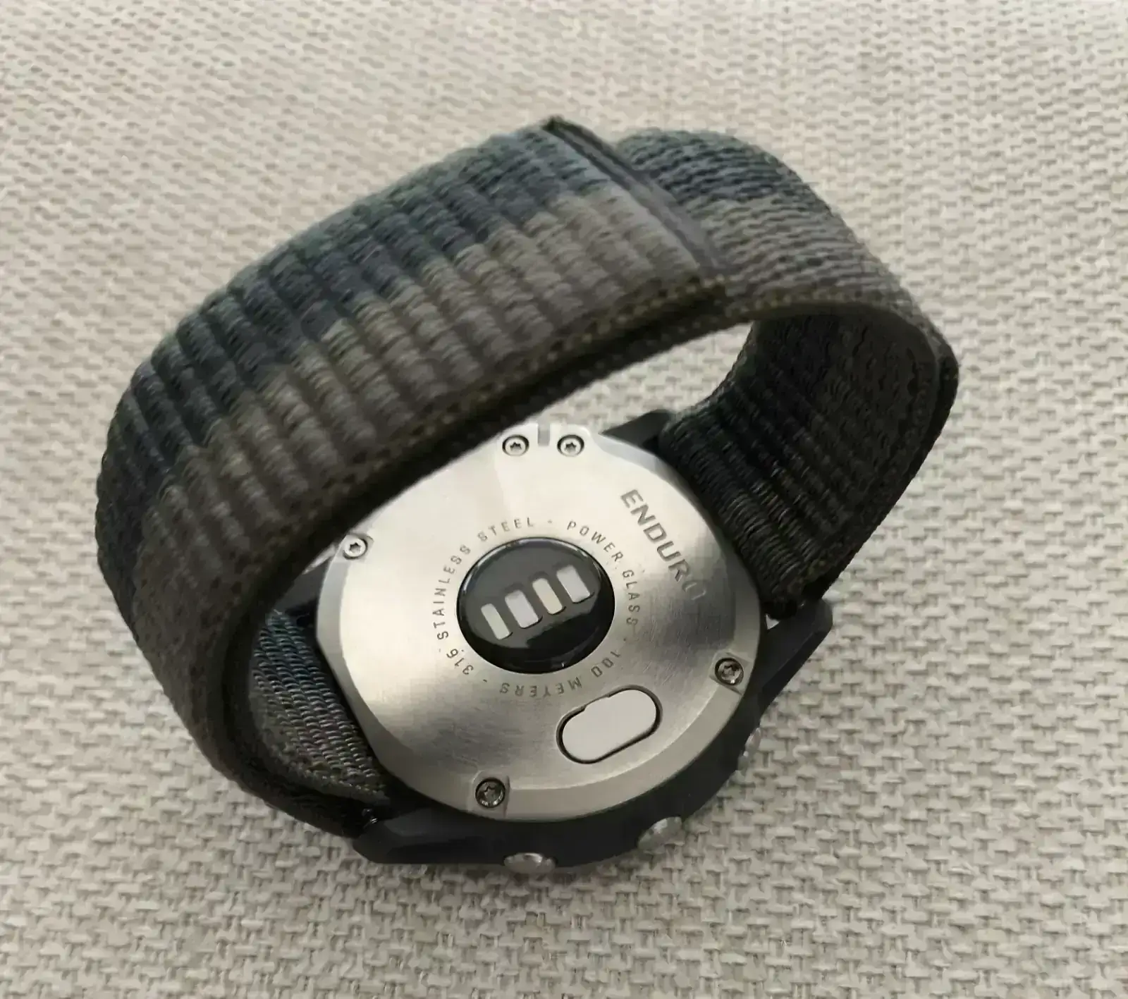 Enduro™ de Garmin cuenta con una lente de carga solar Power Glass™ que prolonga la duración de la batería, una correa de nailon ligera y otras funciones de rendimiento diseñadas para deportistas de resistencia extrema.