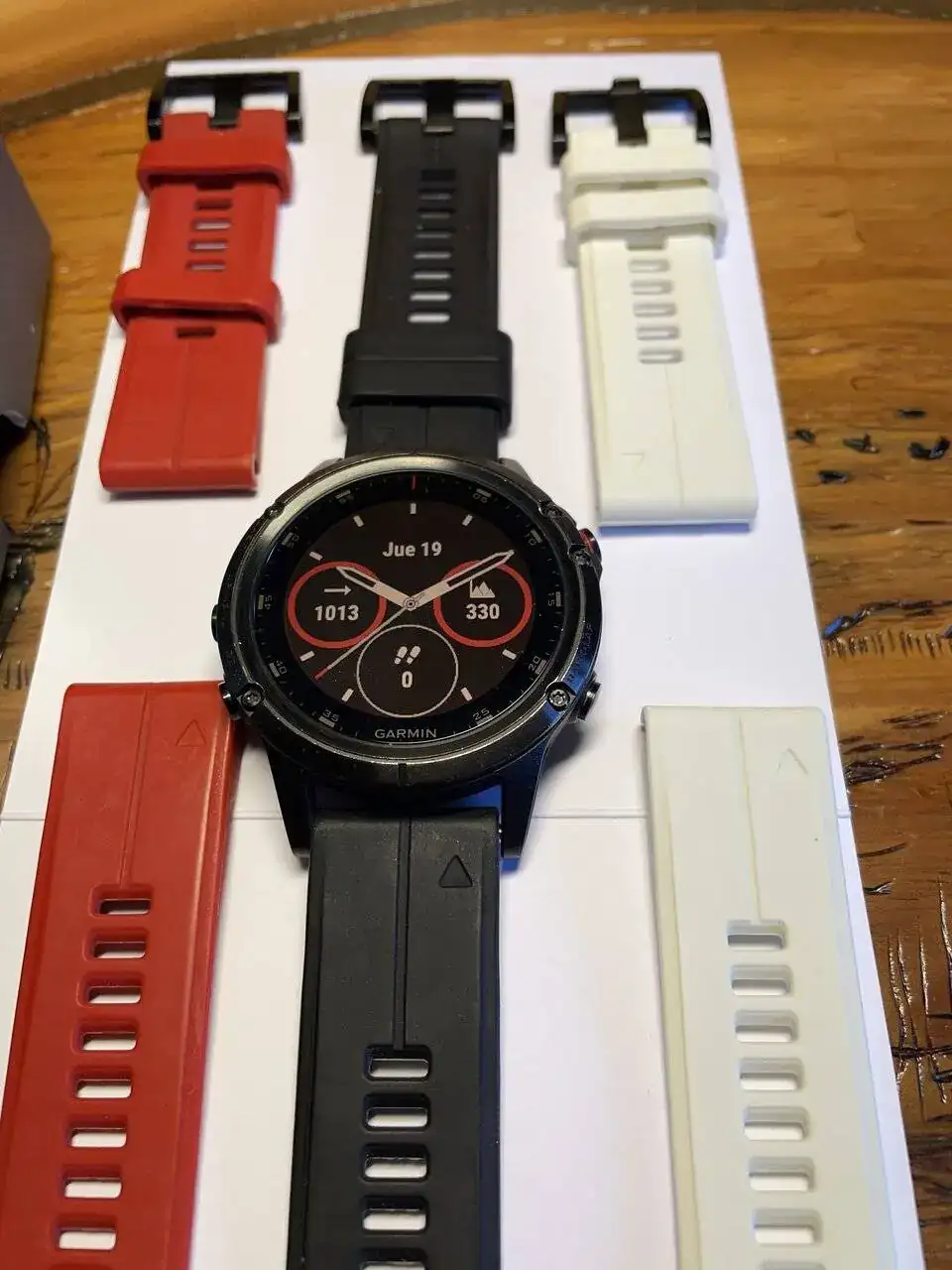 Vendo este fantástico multideportivo con su caja original, cargador y dos correas adicionales. El reloj está en estado muy bueno con típicas zonas de roces en el bisel. Cristal de zafiro impoluto. El precio 215 euros, vendo por paso a otro modelo