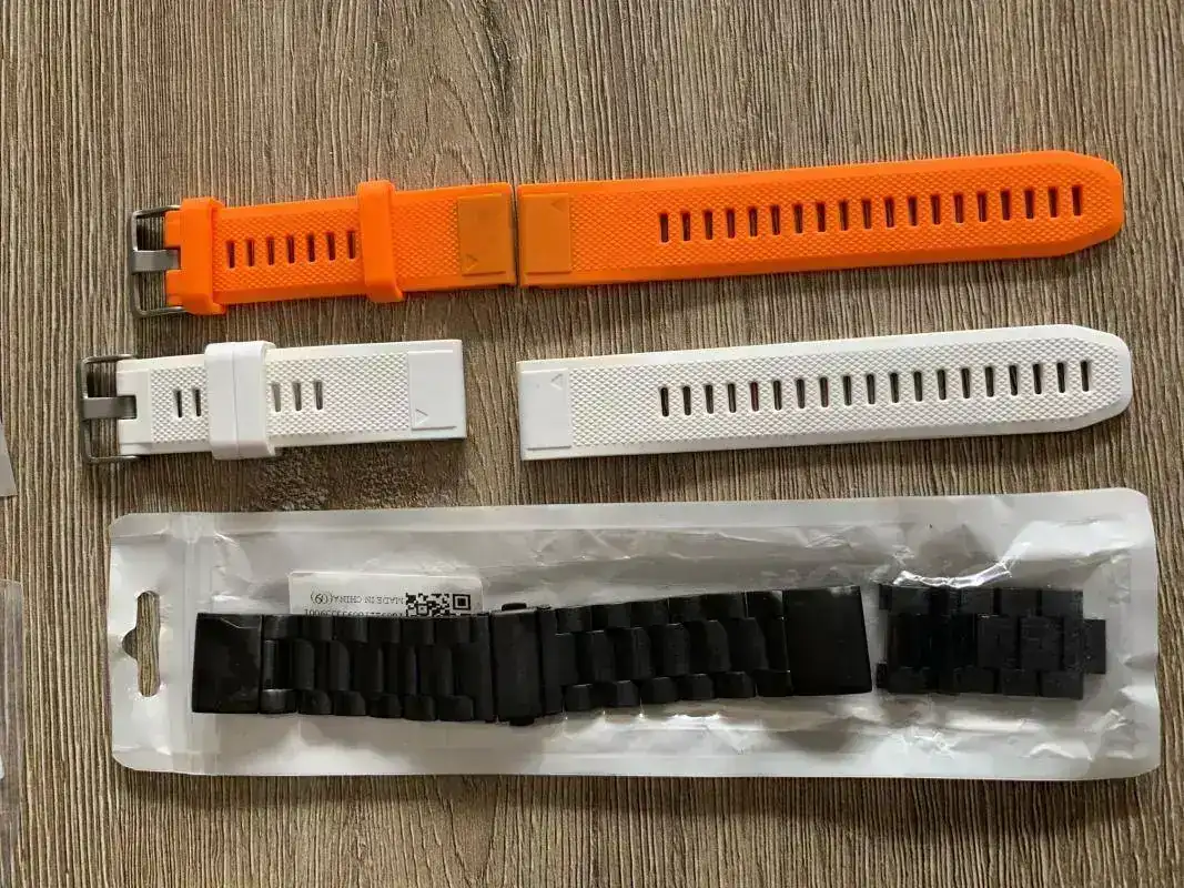 - Correas aftermarket: naranja, blanca y brazalete de acero (usadas máximo un par de veces)