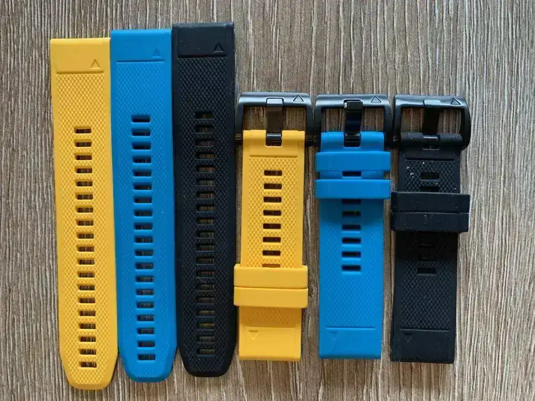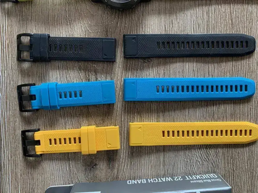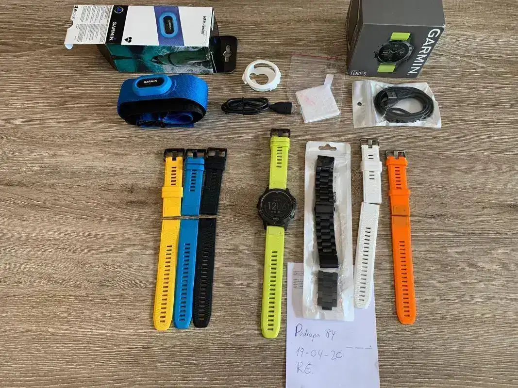 - 3 correas originales en amarillo, negro y azul las cuales tienen un precio en la tienda Garmin de 49€. Están nuevas. Precio 60€ correo certificado incluído (me cobran unos 15€ por envío)