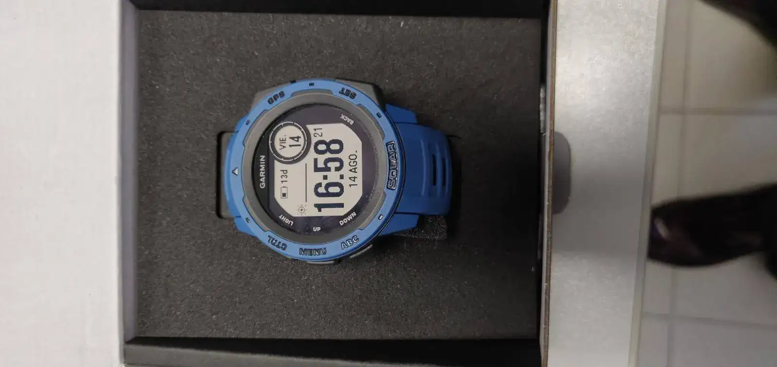 Pongo a la venta el último modelo de Garmin, el Instinct solar en color azul, comprado el pasado 17 de julio, con la siguiente vida útil: ajuste con el móvil, puesta en la muñeca y a la caja. Motivo: no me veo. Reloj de reestreno. Funciones todas: pulsaciones, conexión con el móvil, GPS de lo mejor del mercado....Y encima duración de batería de hasta 54 día, vamos que se acaba el monte y el bicho sigue dando información. Va completo de cajas, y documentación. Precio de venta: 300 euros con envío incluido por mensajería. Gracias a todos por estar ahí y a la cúpula por dejar que estemos aquí. Fotos del susodicho:
