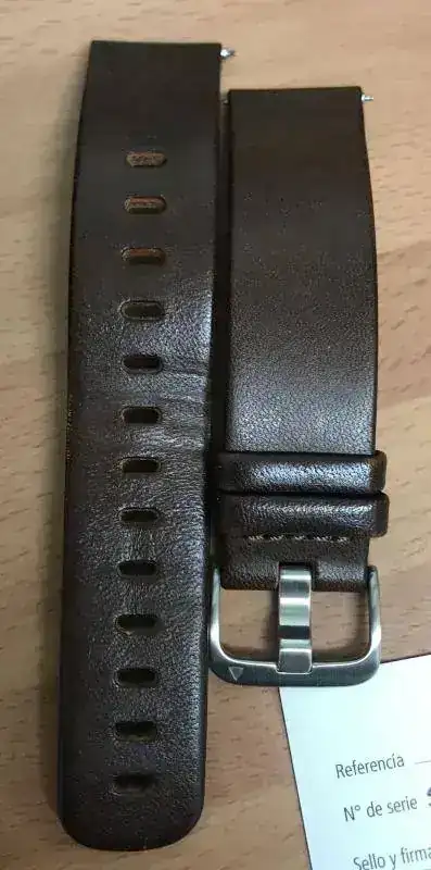 El reloj viene con una correa de piel marrón, pero yo le he comprado un armis que le queda como un guante, se entregaria con su dotacion completa y las 2 correas