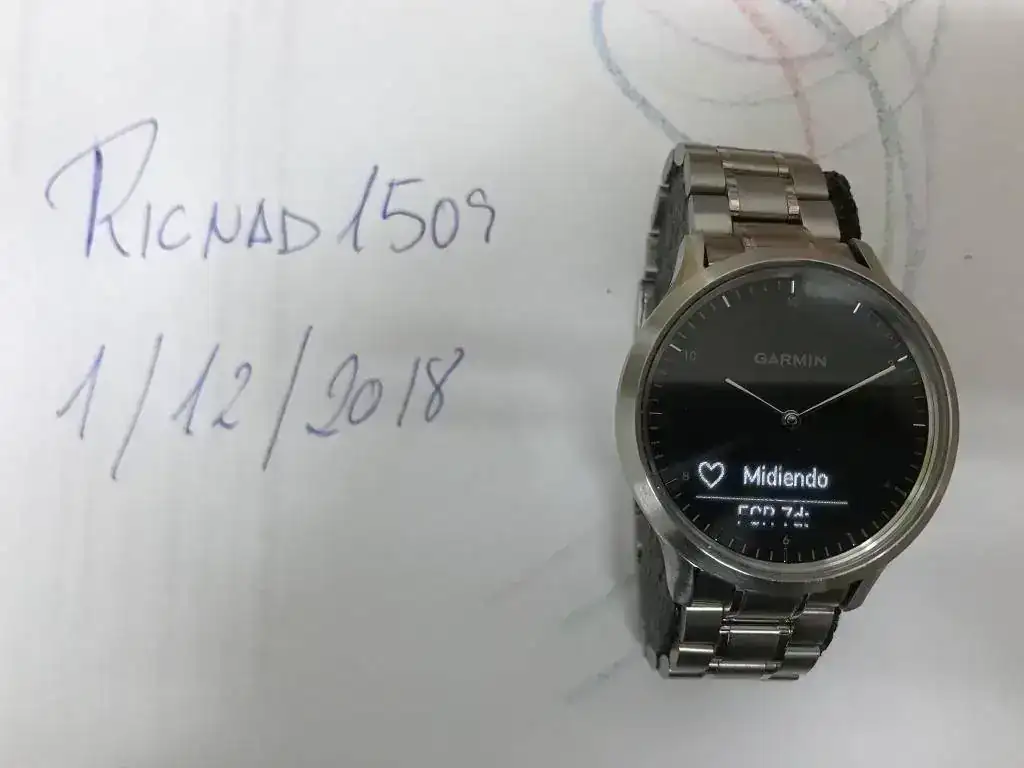 Reloj Garmin Vivomove HR. Totalmente impoluto, me lo he puesto dos veces. Es un reloj híbrido, la hora analogica y una pantalla tactil con múltiples funciones ( pulsometro en la muñeca, aviso de llamadas, calorias, altimetro, barometro, etc...). Pongo el enlace a la pagina web porque seria una locura poner aqui todas sus funciones y especificaciones