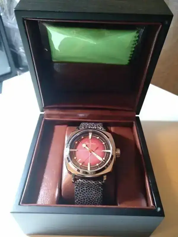 Unas calidades impresionantes ( hasta en el estuche o caja) y un diseño impactante, el color del dial es espectacular. Su estado, sin ser de reestreno, es muy bueno, alguna marquita o pelo, nada significativo,