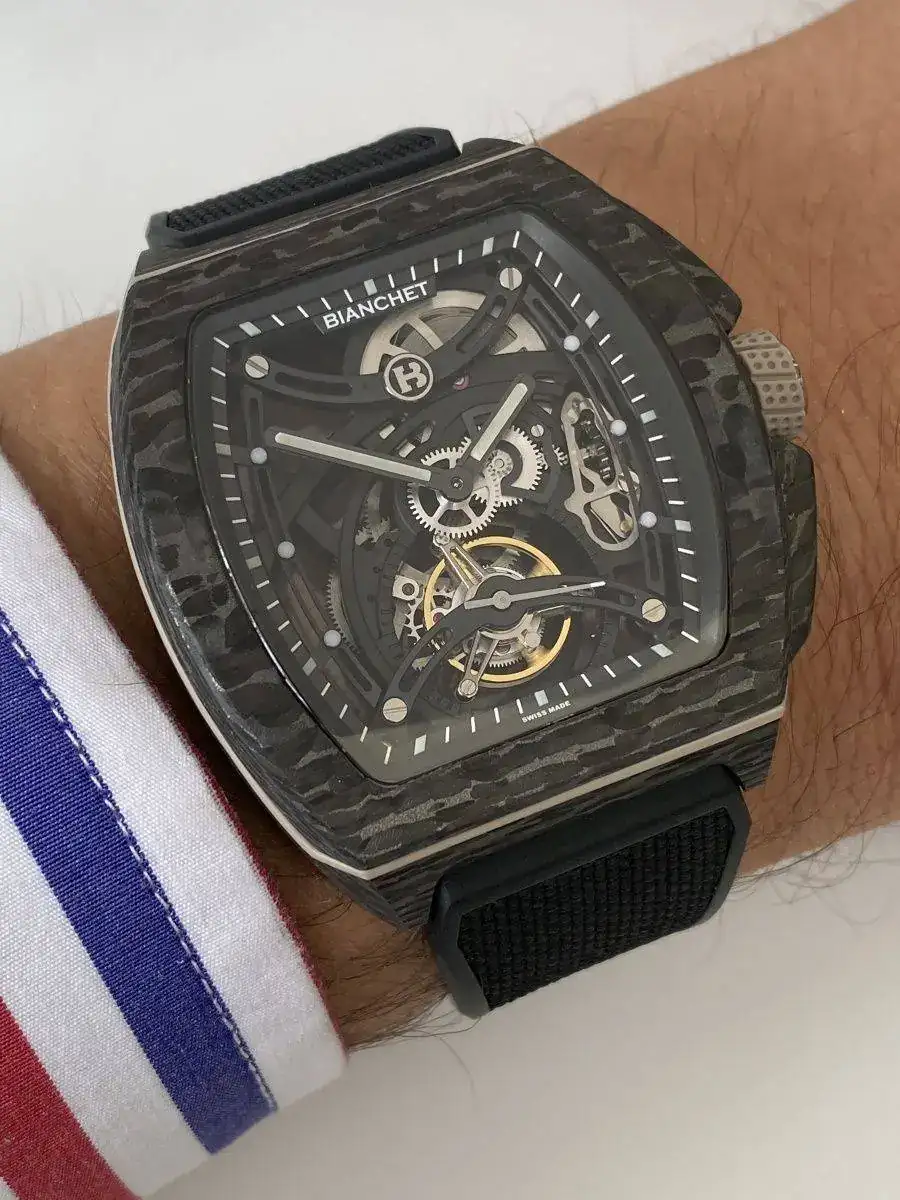 Bianchet presentaba su tradicional reloj tourbillon pero con una caja de carbon forjado: