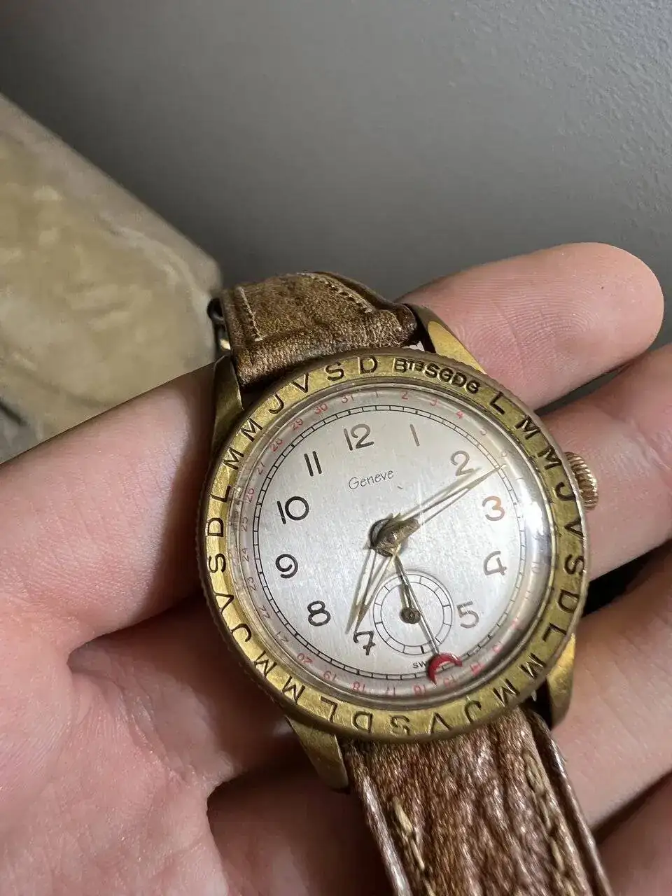 He creado este hilo con la intención de primero compartir este reloj con todos ustedes y que (estoy seguro de ello) sepáis un poco más del tema y podáis ayudarme a conocer y a aprender todavía más. El reloj monta una maquinaria francesa, en concreto un Lorsa 237bc. En mi opinión se ve bien, aunque no tengan mucha idea al respecto. He encontrado relojes similares en la web, incluso en el foro, pero ninguno igual al mío. Algo que me despista es la simplicidad de la marca "Geneve", ni siquiera sé si existe esa marca y además parece haber sido escrita en Comic Sans. Tampoco está bien escrito en caso de que sea en francés pues faltaría el acento en la primera "E". La patente es francesa pero bajo las 6 en punto, está grabada la palabra SWISS (aunque quizás el pointer lo tape un poco, lo siento por eso). Adjunto más fotos y espero con ansias vuestras opiniones, un saludo grande a todos