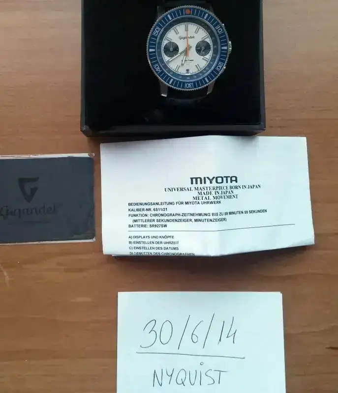 Saco a la venta este reloj Gigandet recibido hace unos días, se entrega con caja de cartón blando, caja de cartón duro, tarjeta de garantía (sin sellar) y manual de instrucciones del mecanismo miyota.