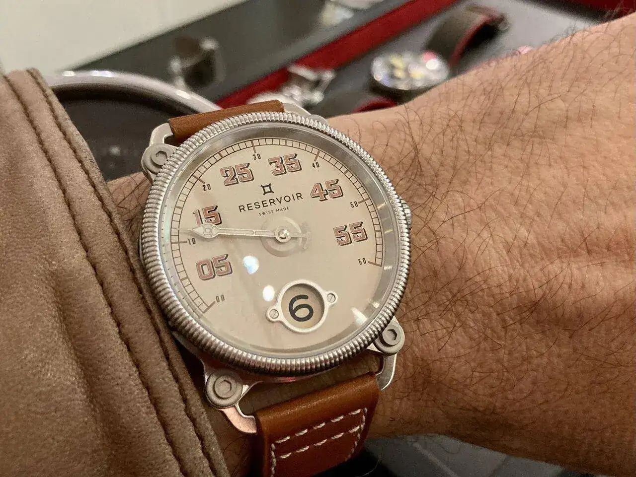 Primera cita: Reservoir, que han hacho de la hora saltante su seña de identidad. Los descubrí en Baselworld 2019, y desde entonces han crecido como la espuma. Su logo es el de una lata de reserva:
