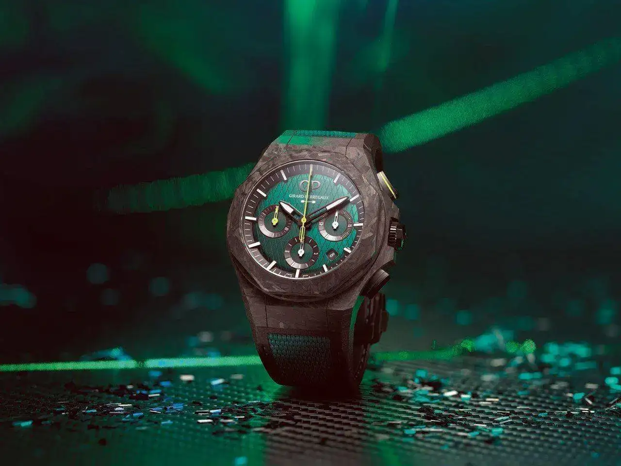 Desde que Girard Perregaux y Aston Martin empezaron a trabajar juntas, han colaborado en dos relojes: el Tourbillon con tres puentes volantes Edición «Aston Martin» y el Laureato Cronógrafo Edición «Aston Martin». Ahora Girard-Perregaux ha trabajado por primera vez con el Equipo AMF1 para crear un nuevo modelo, el Laureato Absolute Cronógrafo Edición «Aston Martin F1».