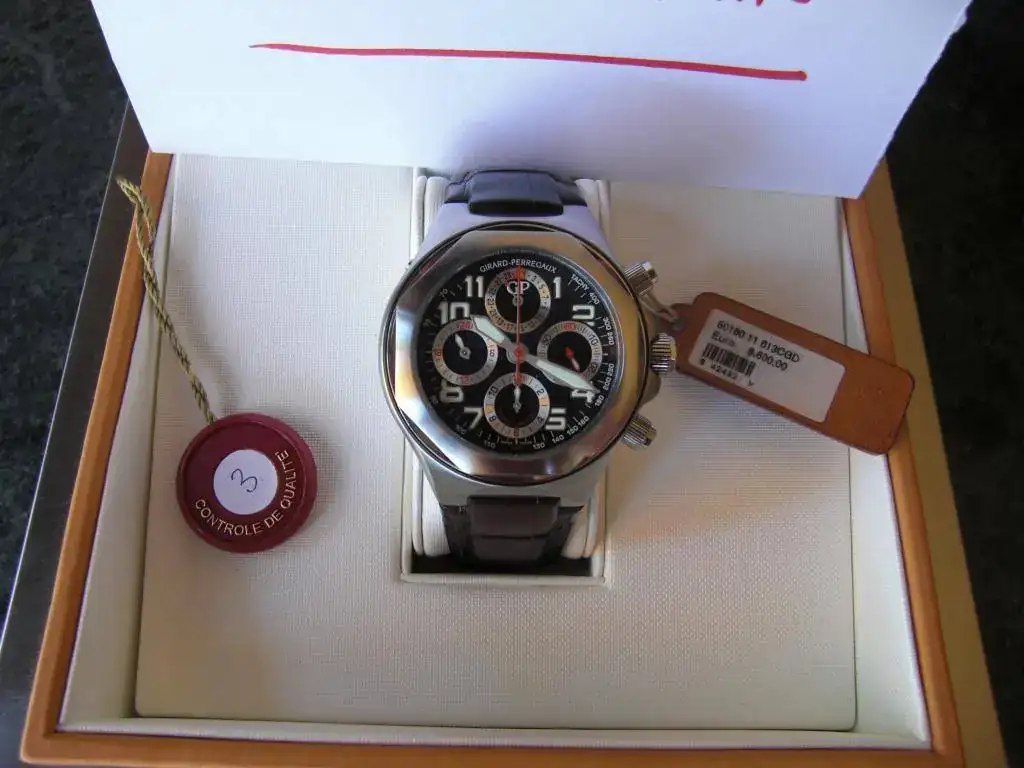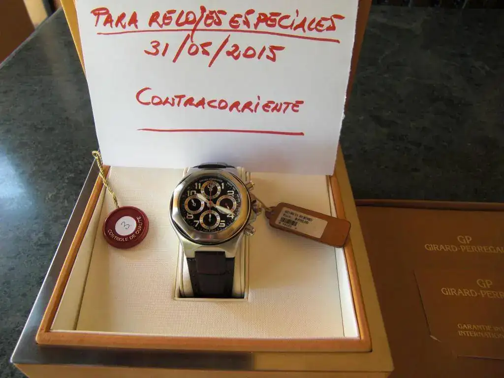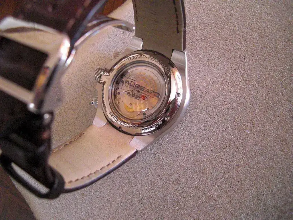 El Laureato Evo3 es sobradamente conocido. Su calibre es manufactura propia de GP, modelo 033 CO, con el rotor en oro. Es la Refª. 80180, de 52 rubíes y con 28.800 alternancias/h. La reserva de marcha aproximada es de 46 h.