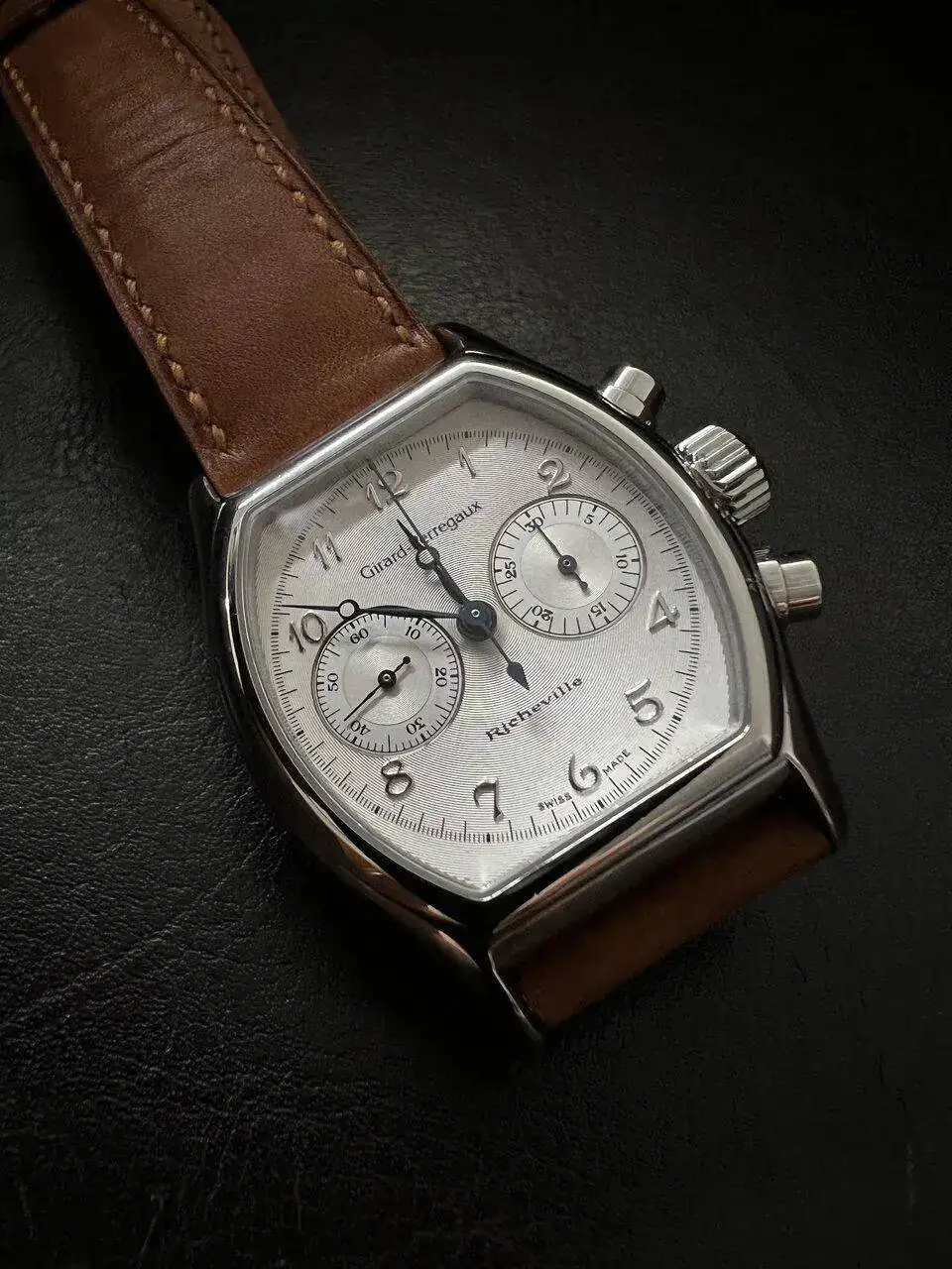 Relojazo, compañero.Buenas forer@s, hace ya algunas semanas recibí esta pieza totalmente revisada y tratada por parte de Dans Relojeros (Jacobo), que lo han dejado en un estado prácticamente NOS, pero el destino ha querido que no sea hasta ahora que he podido presentarla. Se trata de un GP Richeville que se me cruzó por el camino, y que de no ser por los compañeros Jorge (jdortega) y Walter (Doncainastyle) habría seguido su camino hacia otras manos, pero ellos me convencieron y doy gracias a que fue así, porque puedo disfrutar de una pieza maravillosa (bajo mi punto de vista) tanto por fuera como por dentro. Dejo en manos de Walter que comente la parte técnica si procede. Lleva su hebilla y correa nuevecitas y originales of course.
