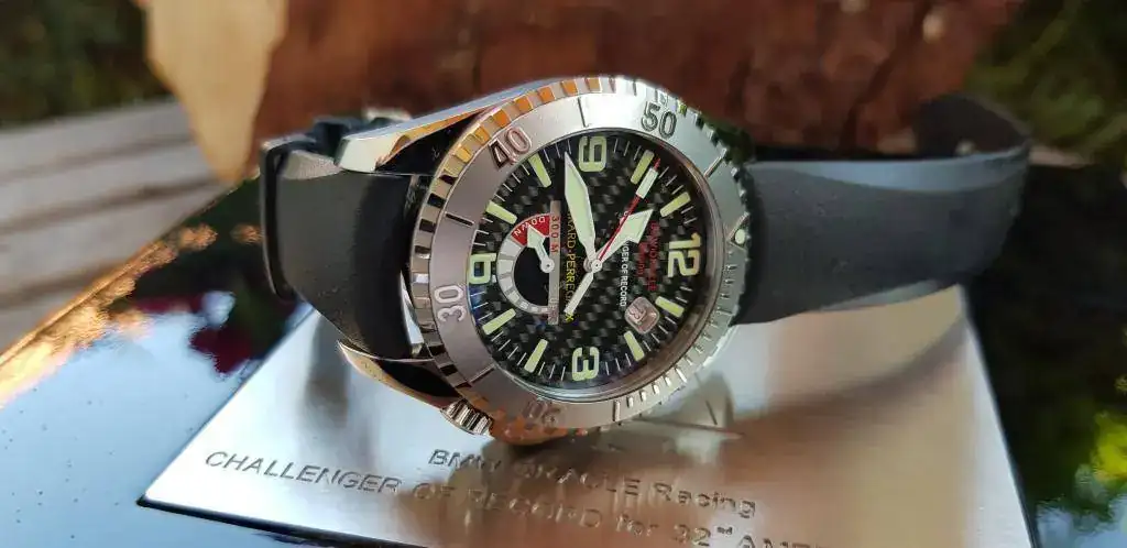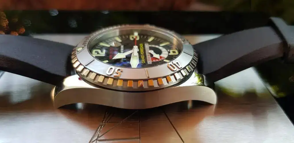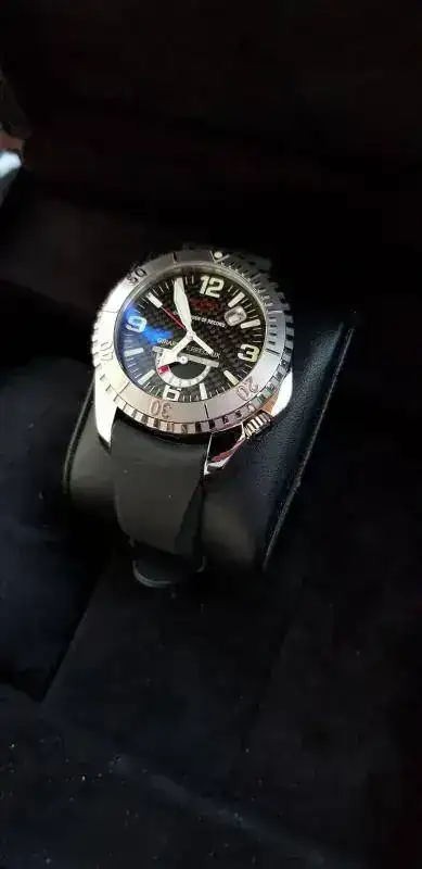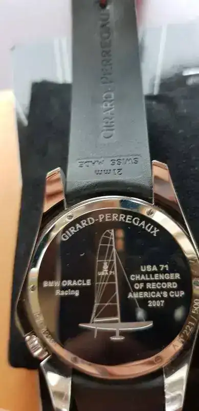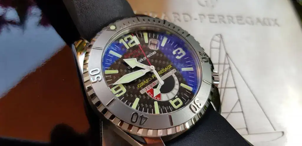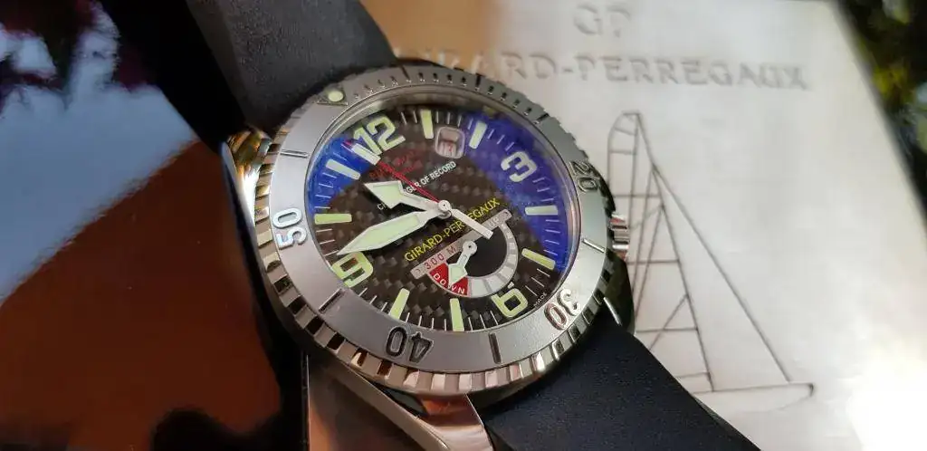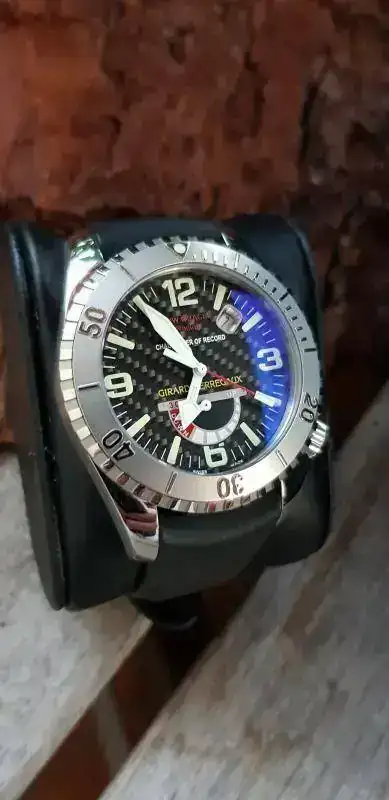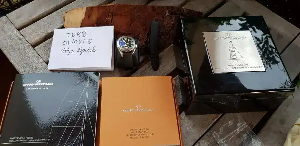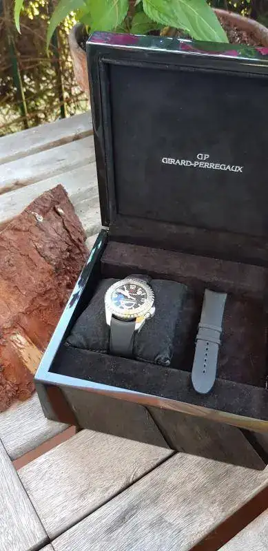 [TD]Hola a todos. Vendo esta pieza de Girard Perregaux, es el modelo Sea Hawk II limited, de 42 mm de diámetro. . Este modelo monta el calibre manufacturado por Girard-Perregaux GP 033RO (automático), de 26 rubíes y 28.800 a/h. con reserva de marcha. , fabricada en acero con terminaciones pulidas/cepilladas; índices y agujas aplicados a mano con Superluminova; WR. 300 m.; corona atornillada; indicación de día y reserva de marcha; esfera negra de carbono. Monta una correa de caucho con cierre deployante de la firma y añado una correa nueva de caucho original de la firma. Se entregaría con toda su documentación y tarjeta de garantía sin rellenar. El estado es excelente , diría que un 8,5 sobre 10. El precio de venta para esta pieza es de 2650 €, el Pvp de esta pieza era de más de 8000€. Estoy abierto a cambios, es caso de cambio, de acuerdo a la valoración que se le de a la pieza en cuestión,yo le daré mi valoración. Preferiblemente cambios por relojes deportivos, y siempre de valor superior a mi pieza( Breitling B01, Rolex, IWC ,o relojes acero automáticos de 34-36 mm para damas. Un saludo y muchas gracias al foro por este espacio.