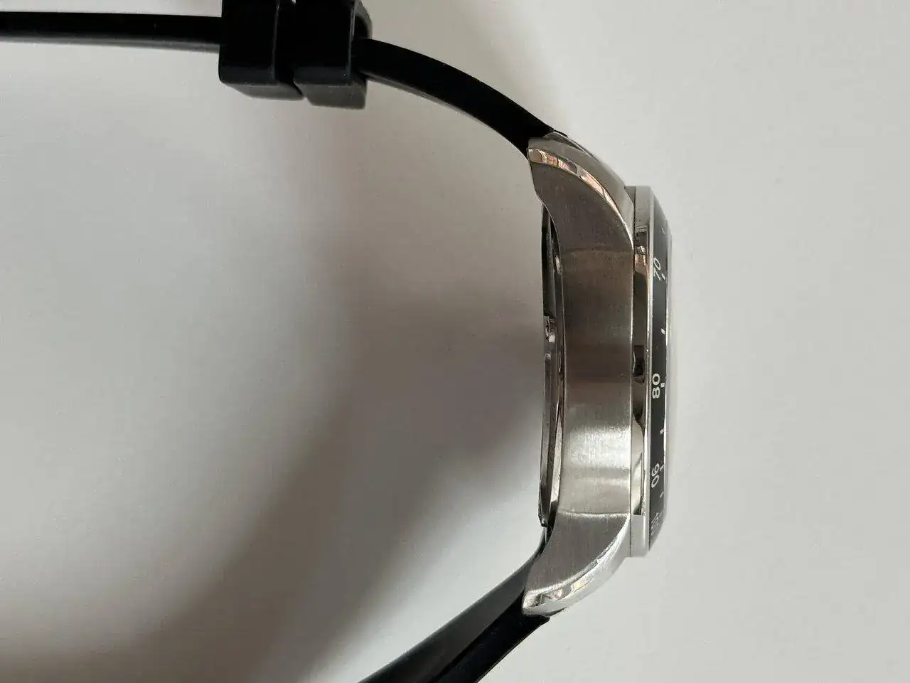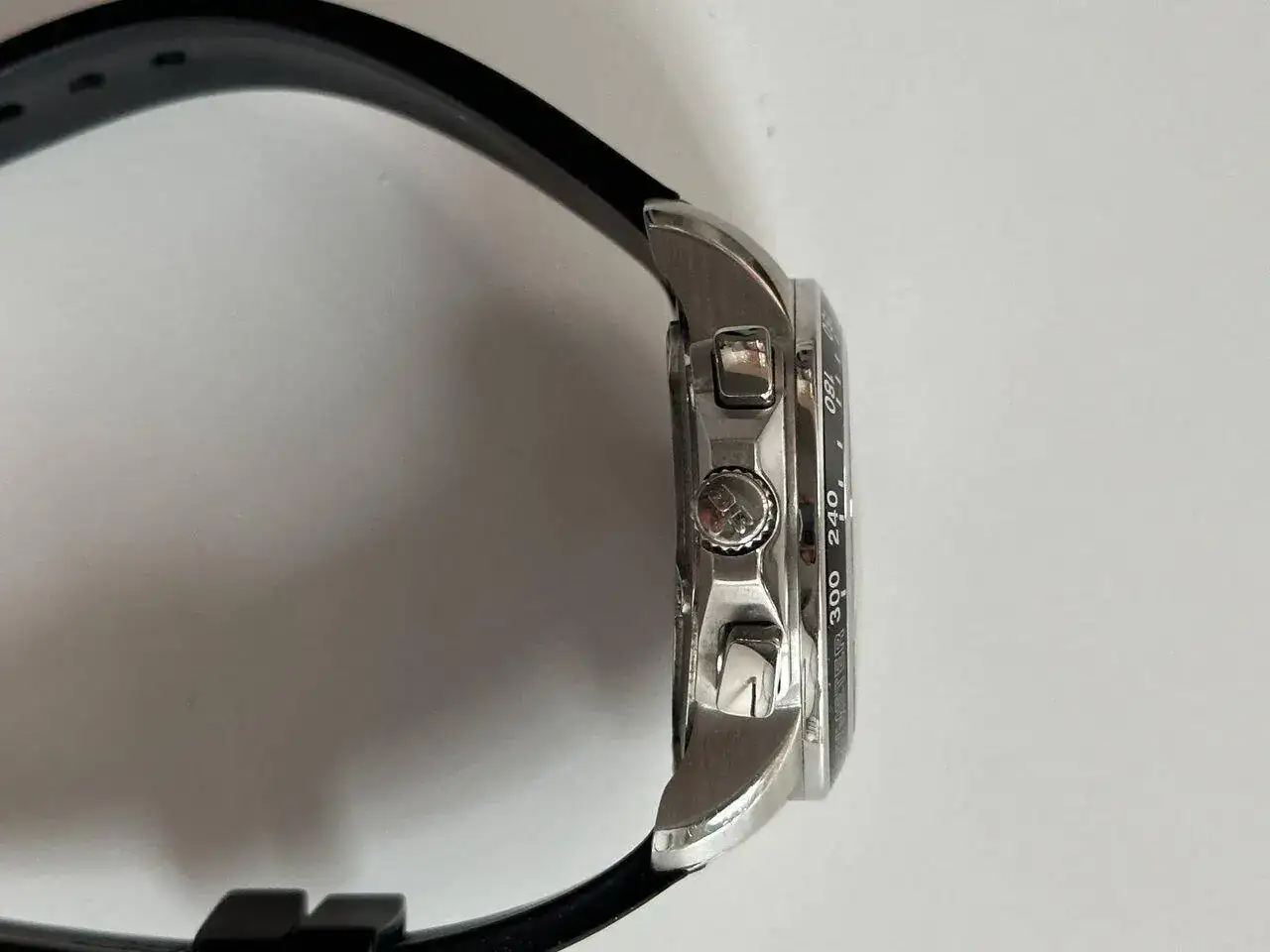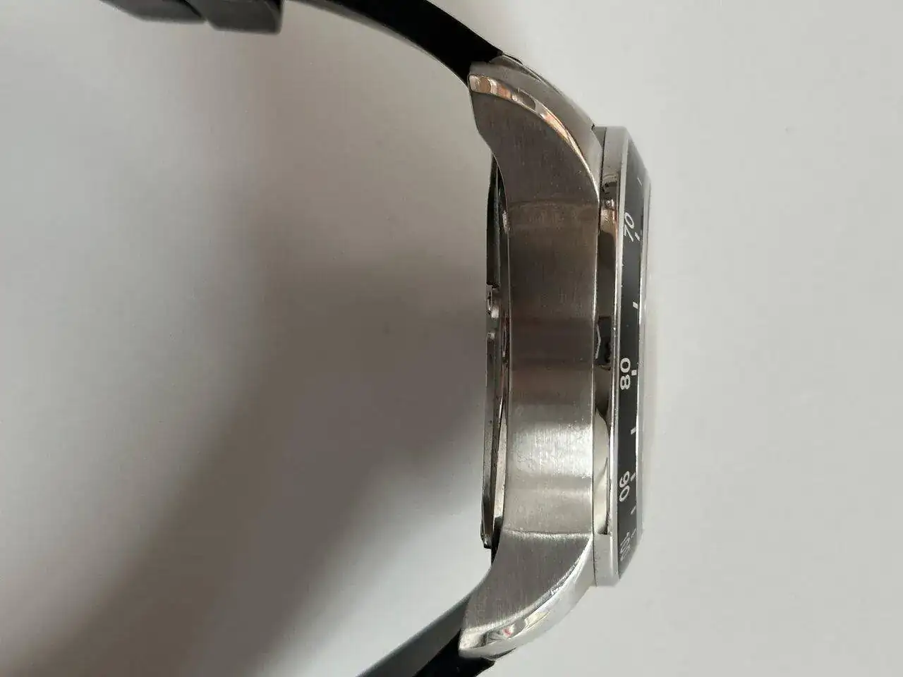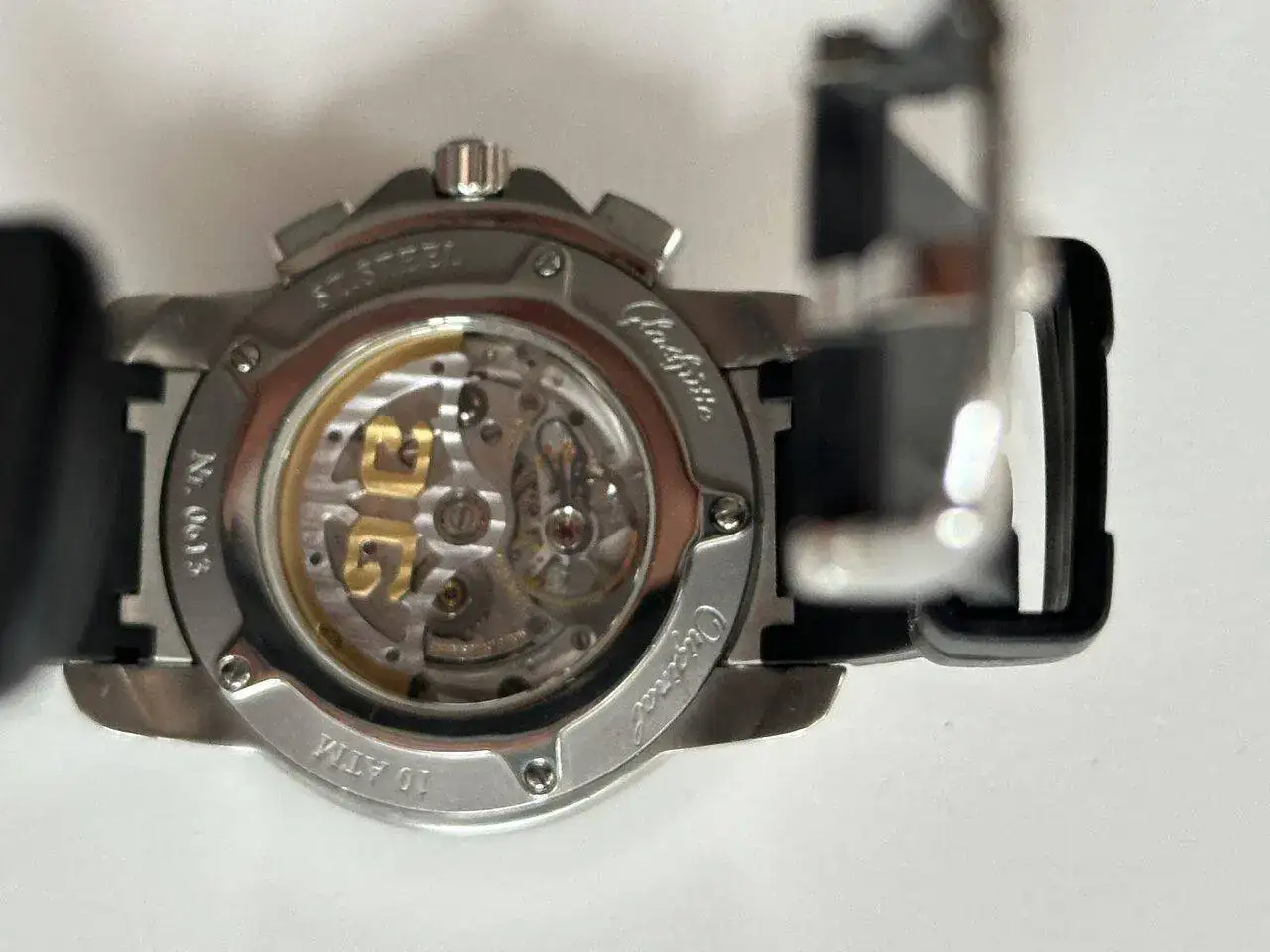 Es un Glashütte Evolution Chrono de 42 mm. Con correa de caucho.
