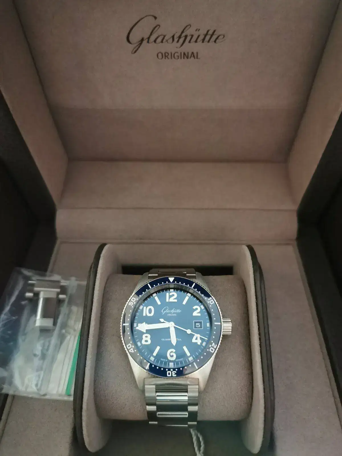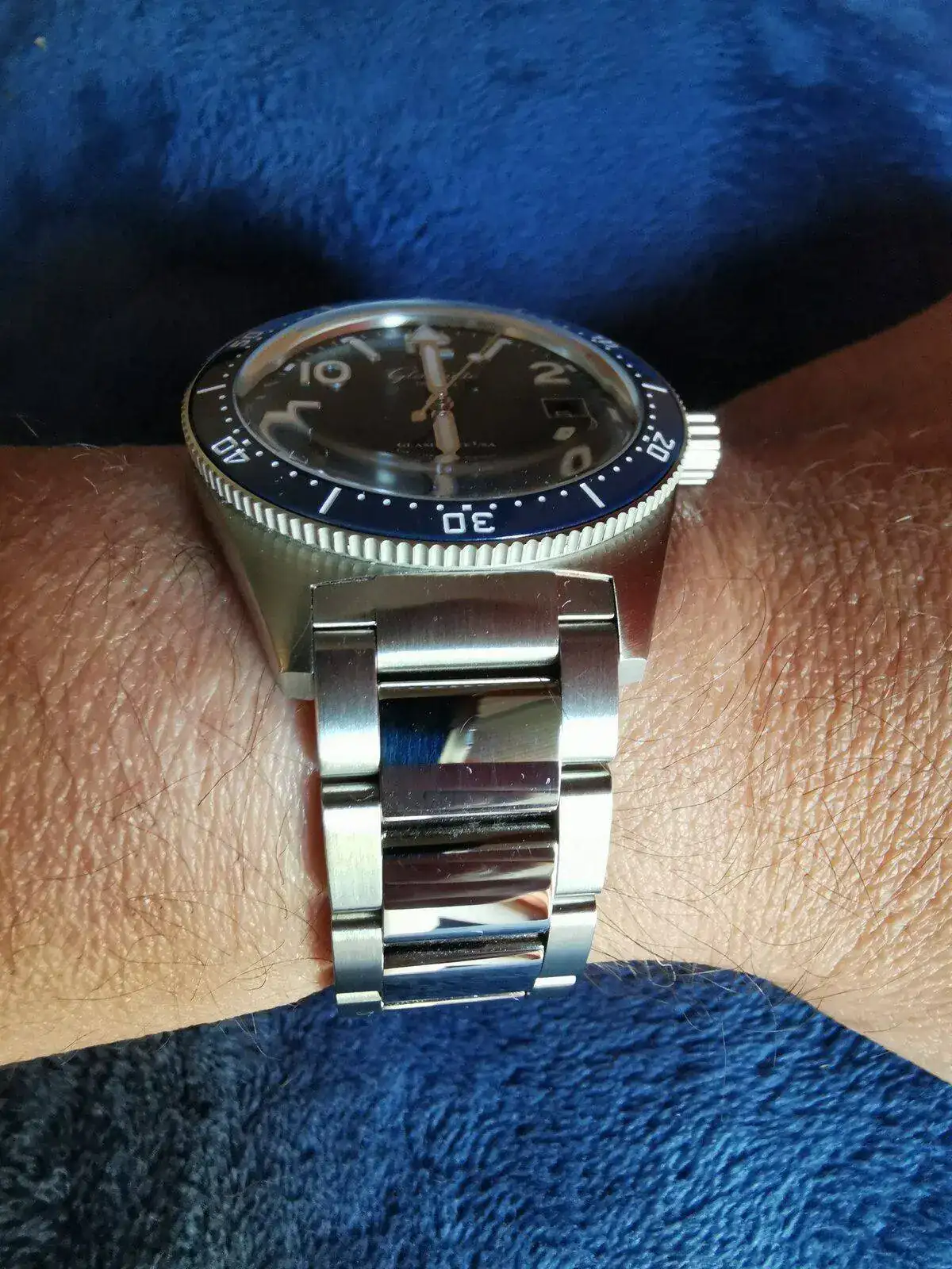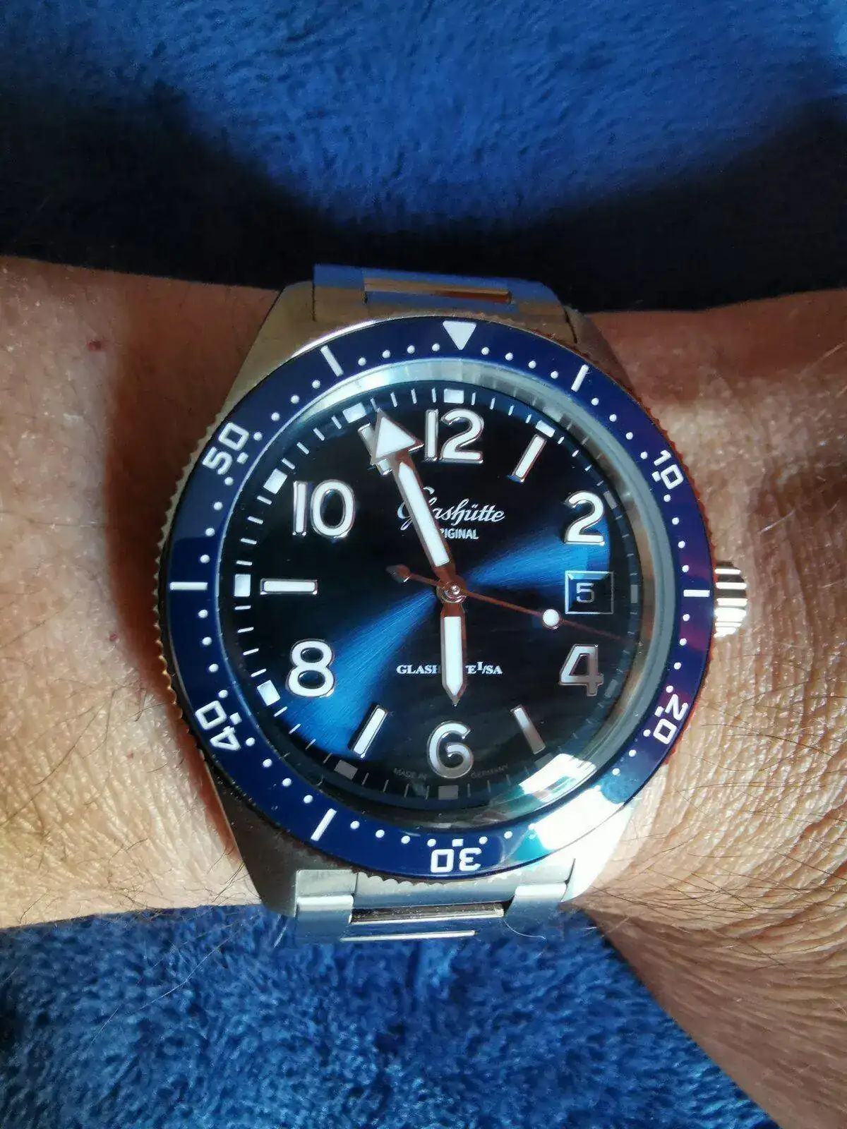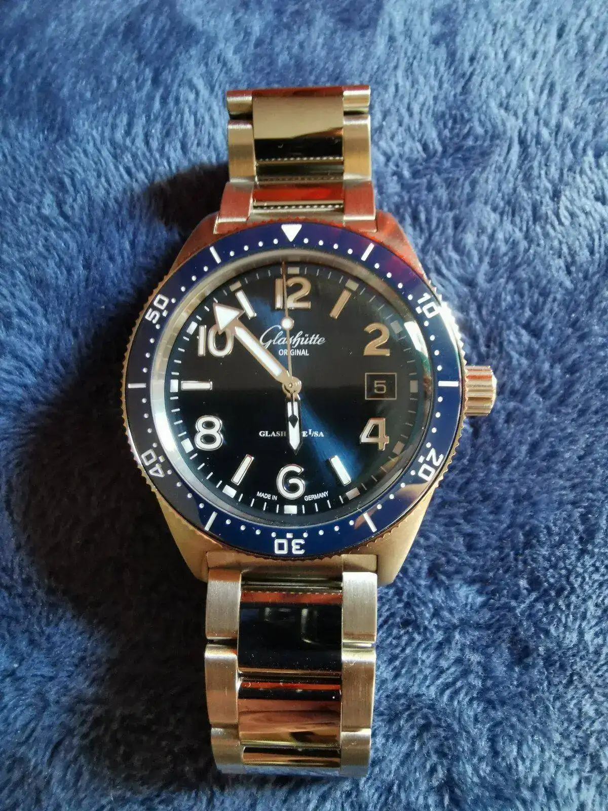 Hola à tod@s, llegado hace ya un tiempo (comprado en la boutique de Dresden) lo presento ahora, dudé entre el dial negro y el azul, también entre este y el Seventies que también me gusta mucho, finalmente me decidí por el que veis, más que nada por su resistencia al agua y por mi vista cada vez más cansada, la lectura es sensacional así como sus acabados y el microajuste, muy bueno, el mejor que he tenido nunca, fotos hechas con un poco de prisa, saludos