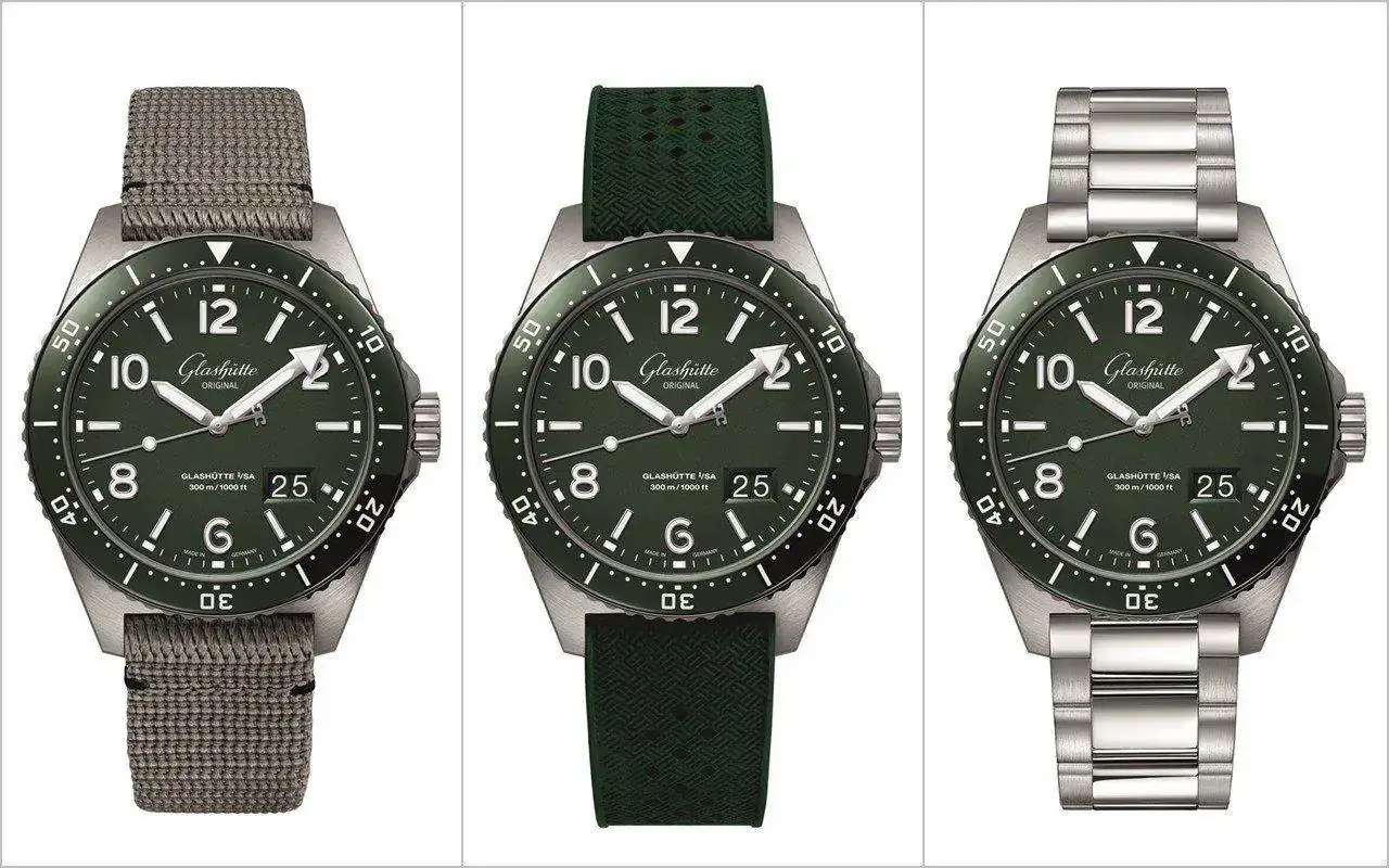 El SeaQ Panorama Date forma parte de la colección Spezialist de Glashütte Original y, si bien ya había un Sea Q en verde, no es menos cierto que faltaba una de las complicaciones emblemáticas de la marca: el Panorama Date. Y es emblemática porque nadie más que Glashütte Original propone los dos discos que la componen de forma concéntrica en lugar de "montar" una cruz sobre un disco. El responsable de que esto sea así es el ya conocido Calibre 36 en su versión 13 (36-13) que incorpora dicha complicación.