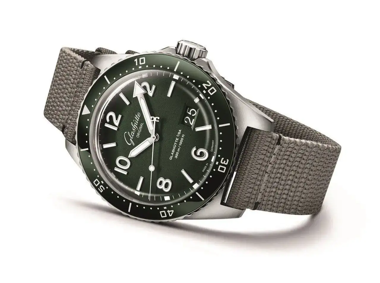 Esfera: Laca verde, números e índices aplicados con incrustaciones de Super-LumiNova®