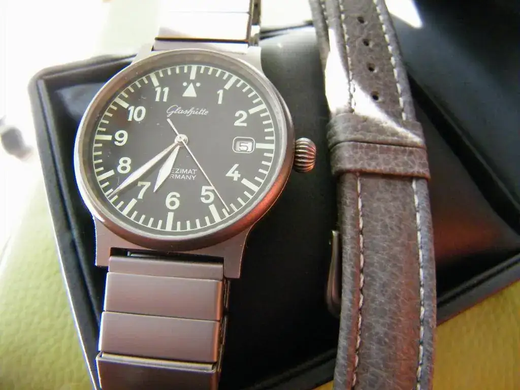 Intentando reducir colección: Vendo un auténtico capricho, Glashütte Spezimat automático con esfera pilot y dotado del reconocido calibre glashütte 10-30. Caja de titanio y correa de piel original, lo entrego con un brazalete de titanio que le compré y que creo le queda muy propio. Muy cómodo y en un estado verdaderamente impecable.