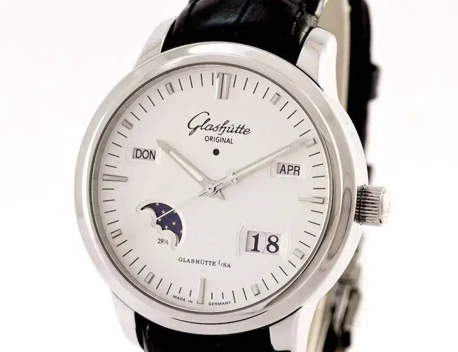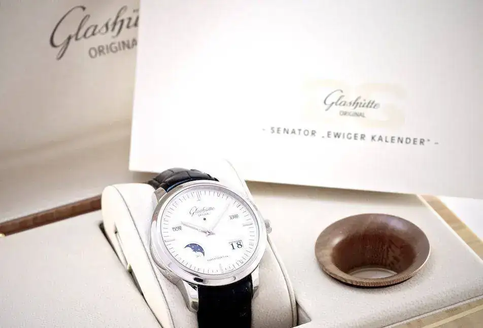 Se trata del Glashutte Senator Perpetual Calendar ref 100-02-13-02-04, que había visto en fotos en ocasiones y me parece espectacular, espero que en la realidad lo sea también.