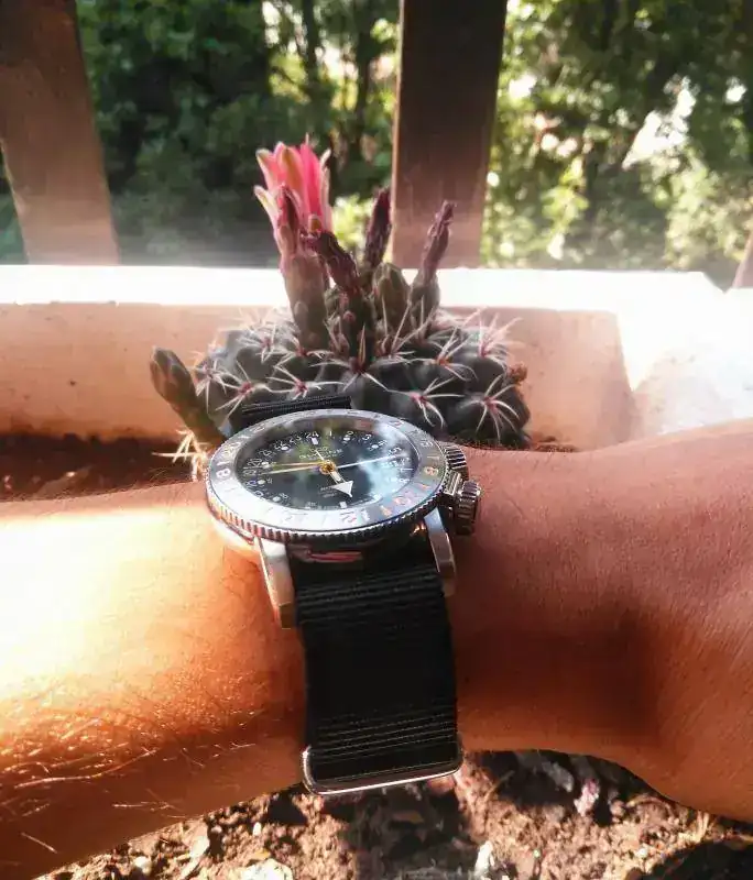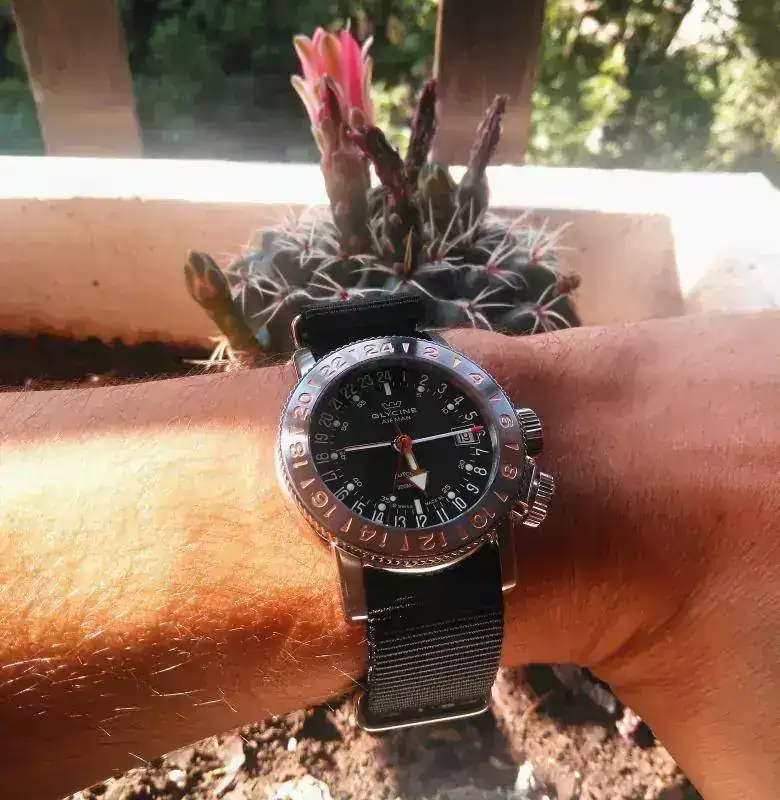 El reloj es realmente bonito y con un tamaño (39mm sin incluir coronas) en mi opinión muy ponible, no he tenido todo el feeling que esperaba con él, así que quisiera optar por la versión más vintage y purista de los airman con movimiento 24 horas.