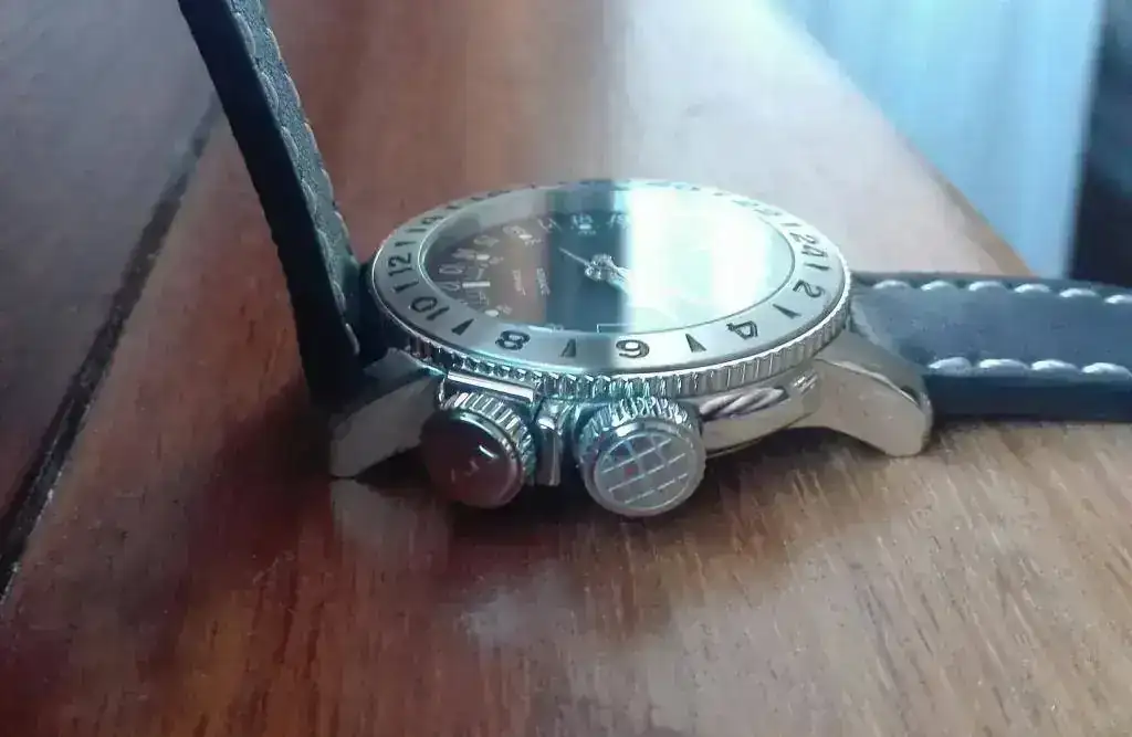 Saco a la ventana este fantástico Airman comprado por mí en Drop en agosto de este año. Es un reloj precioso y su estado es casi perfecto. Tiene una microraya en el bisel a la altura de las 8 que no se ve dependiendo de la luz. Además es un bisel 24h cepillado. Zafiro tanto por delante como por detrás y las dos coronas roscadas. Es un 200 metros.