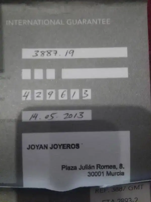 El reloj fue comprado en C.O. Nacional el 5-2013 y va con la dotación completa, caja exterior negra, caja interior de plastico y polipiel, manual de instrucciones y libro de garantía sellado y fechado por C.O.