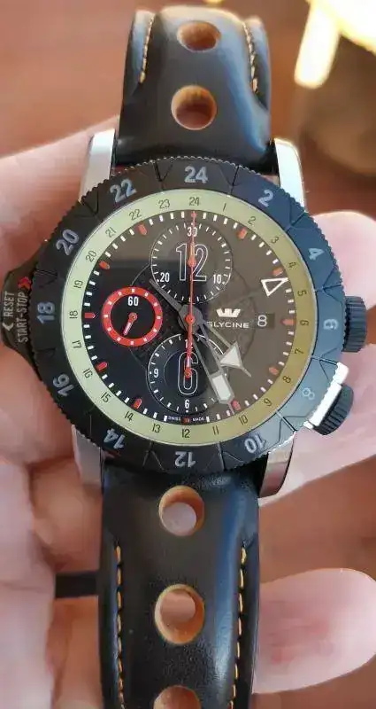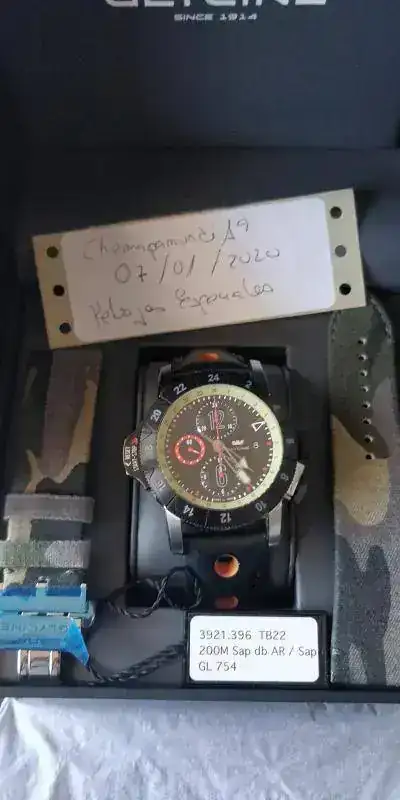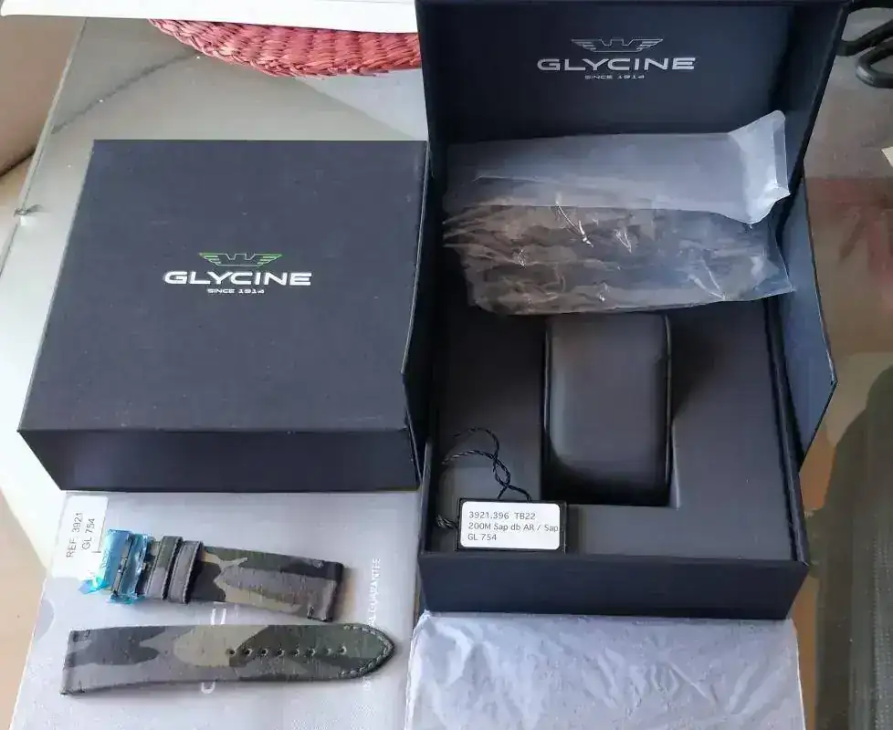 HOLA A TODOS, POR REDUCCIÓN DEL NUMERO DE RELOJES QUE TENGO, SACO A LA VENTA MI ESPECTACULAR GLYCINE AIRMAN AIRFIGHTER CAMOUFLAGE. COMPRADO POR MI EN CONCESIONARIO OFICIAL, EL ESTADO DEL RELOJ ES DE 9,9 SOBRE 10 (VER FOTOGRAFÍAS ADJUNTAS) YA QUE HA TENIDO MUY POCO USO. LA CORREA ORIGINAL GLYCINE TIPO CAMOUFLAGE CON SU DEPLOYANTE ORIGINAL ESTÁN NUEVOS SIN ESTRENAR, YA QUE NADA MAS COMPRARLO LE PUSE UNA CORREA RALLY QUE ES CON LA QUE HE UTILIZADO LAS POCAS VECES QUE ME LO HE PUESTO (ESE ES EL MOTIVO DE LA VENTA QUE TENGO DEMASIADOS RELOJES).