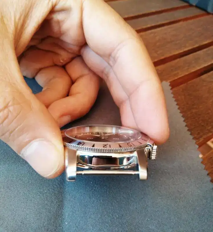 Aclarar que consta de 4 agujas, 3 que se corresponden con el movimiento más común de los relojes (horas, minutos y segundos), es decir, que la horaria pasa dos veces por las 12 y una cuarta (gmt) que barre el dial una sola vez al día. Estos serían los 2 husos horarios principales, el tercer huso horario corresponde al movimiento del bisel externo que se desbloquea con la corona situada a las 4 y que se calcula respecto de la aguja gmt de 24 horas.