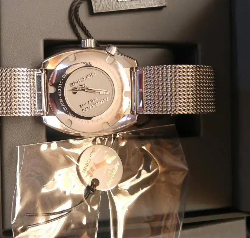 Movimiento ", con 42 horas de reserva de marcha. Brazalete de malla(milanesa) que le queda perfecto, y le da todavía más entidad al reloj.