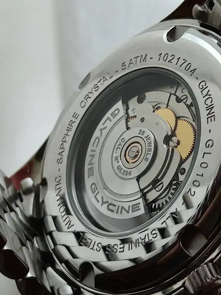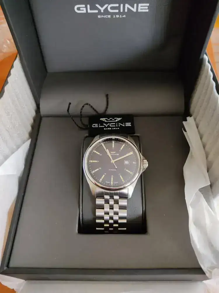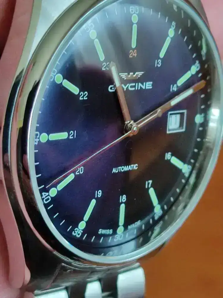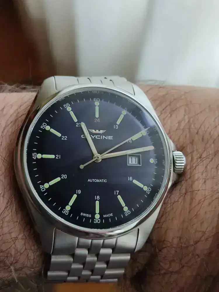 Preciosa esfera azul la de este Glycine. Tiene un mes, por tanto, en garantía. Completo.