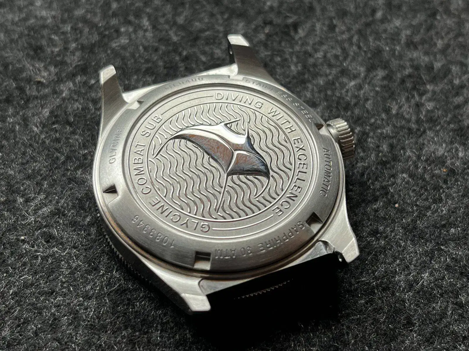 La corona viene con el logotipo de Glycine, el agarre es muy bueno y su manipulación agradable, me ha llamado la atención que al enroscarla el remonte manual nos acompaña en este proceso aunque se enrosca bien.