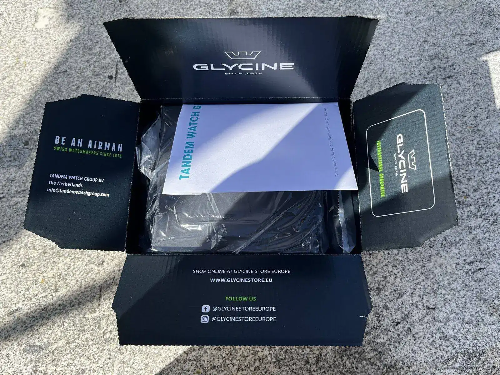 Extraemos el estuche del reloj, la factura y ya somos miembros de la familia Glycine.