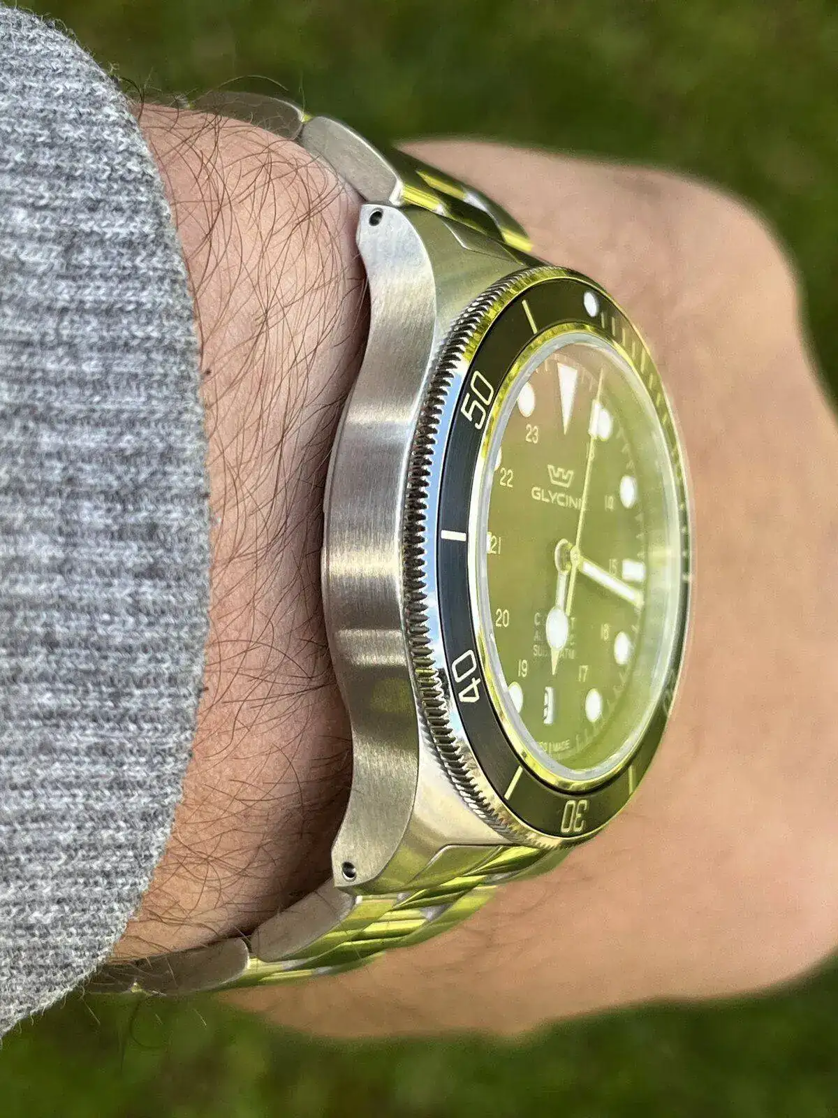 Una muy buena compra. Estoy seguro que veremos muchos de estos relojes, en su variedad de colores, en el foro. Glycine acertó con el diseño y tamaño.