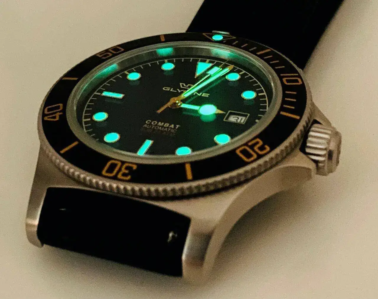 El modelo en concreto es el GL0484, ya descatalogado por Glycine. Es un reloj comodísimo, duro y muy versátil, encaja perfectamente en muchos ambientes diferentes y estilos. La caja es muy fina y la forma de las asas lo hacen muy cómodo en muñeca.