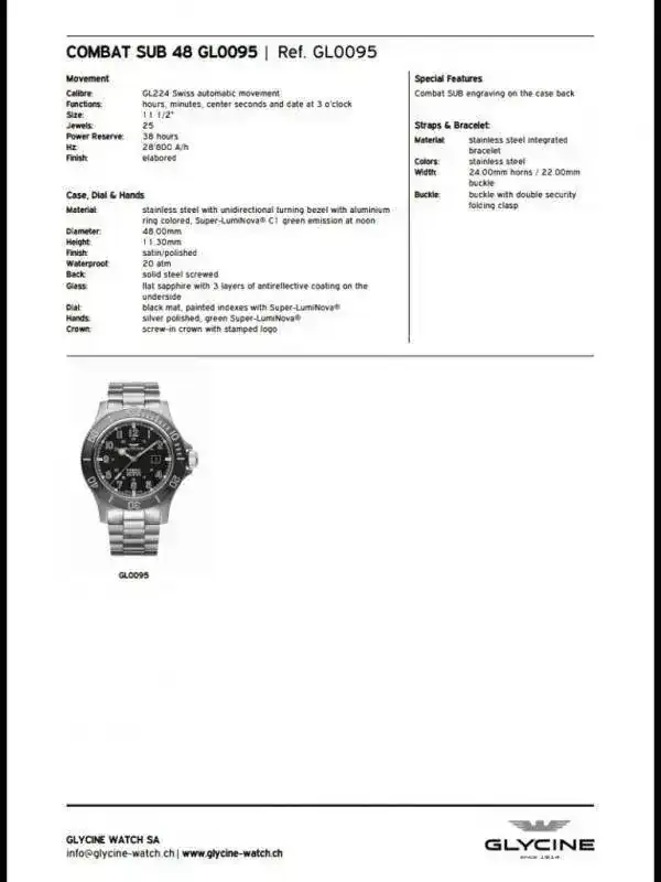 Buenos días, ofrezco esta ganga para el compañero que quiera aprovecharla: se trata de un GLYCINE COMBAT SUB 48, totalmente NUEVO, a estrenar, con toda su dotación incluida (caja, documentación, plásticos,...). Y ahora, el chollo: 350€.