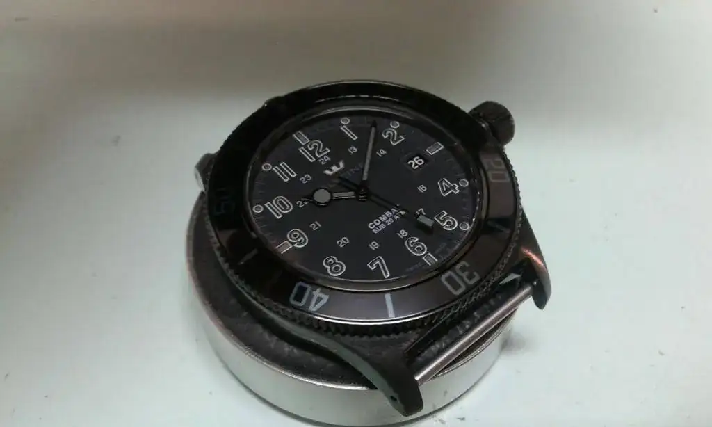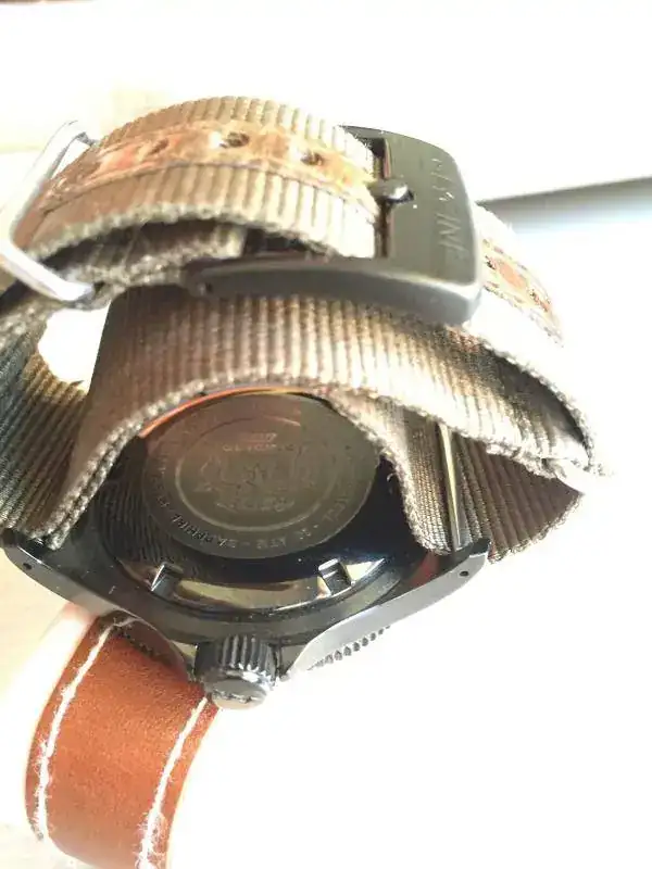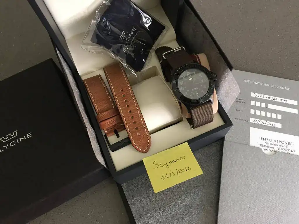 El PVP de este reloj actual es de 850 € y se incluye una correa de piel NUEVA con su hebilla que vale 90 €. Importante que se ha enviado a nuestro amigo Luxmento para alegrar esas agujas ALL BLACK, con un verde precioso (ver foto). Este tratamiento viaje y prueba de estanqueidad, también han costado un dinerito, por lo que hablamos de algo más de 1000 € de inversión.
