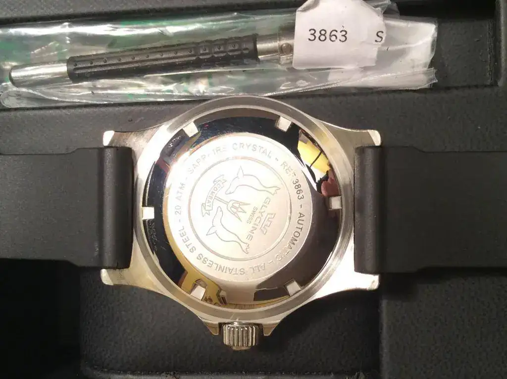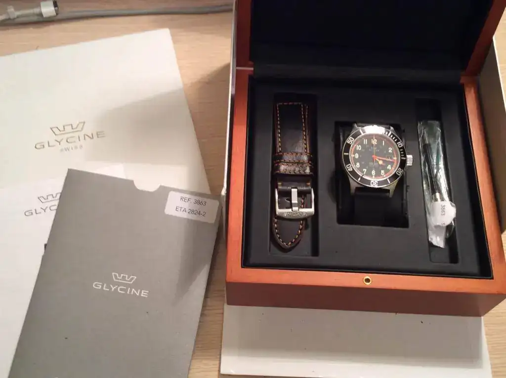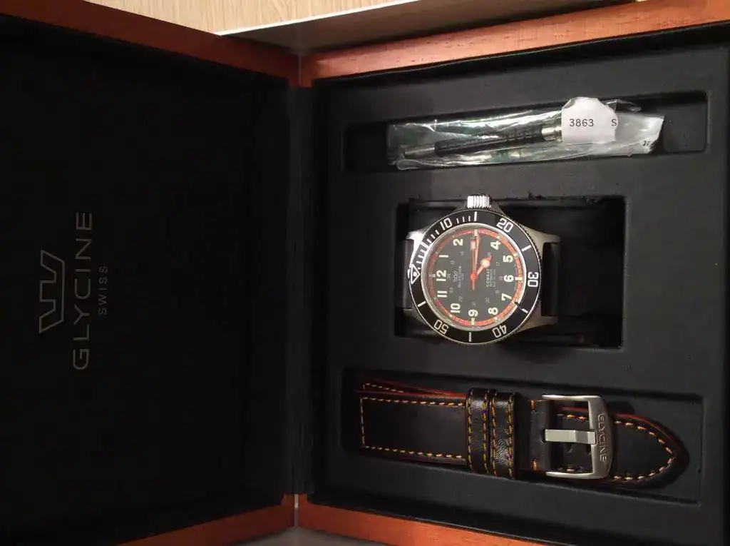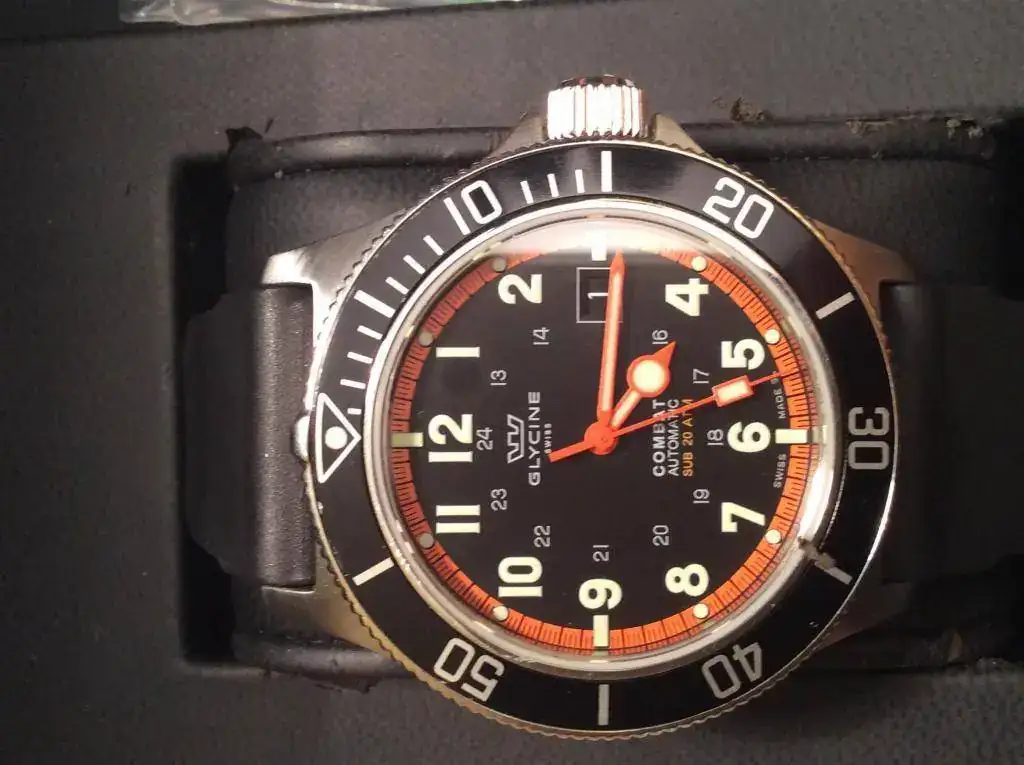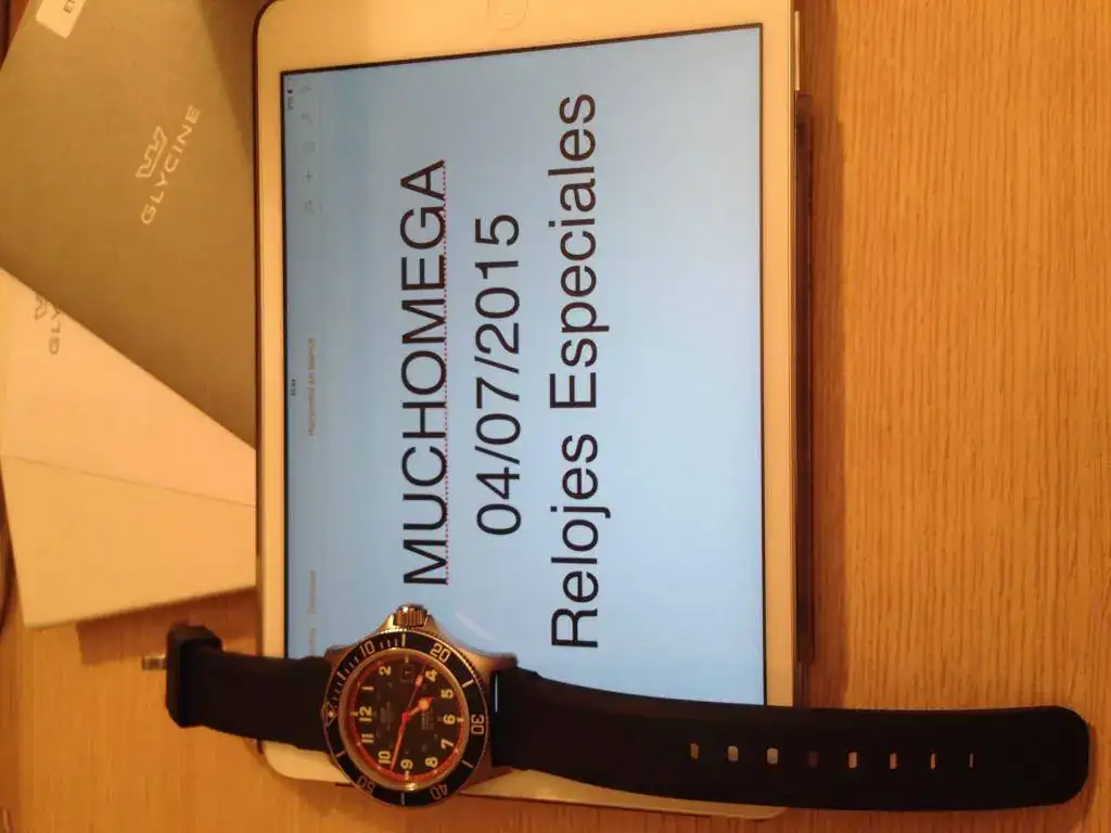 Vendo mi Glycine combat sub comprado a otro forero de re, es del 2010 y tiene unas marcas en los orificios de los asas heredadas del anterior dueño por el cambio de correas, pero que prácticamente no se ven si no es en las dichosas fotografias que hacen que el reloj parezca en estado de derribo . Viene completo, con el pincho para cambiar de correas, documentación y con la correa de piel original y cantos naranjas a juego con la esfera, también va con una correa bonetto cinturini muy similar a la original, también con olor a vainilla comprada a trilanova.Indicar que en el primer plano de la esfera se ven unos trocitos sobre las siete que no son desperfectos, son "intrusos" en la foto, pero lo que si se puede observar es un punto casi imperceptible en el bisel justo a la izquierda del triángulo de las 12h.