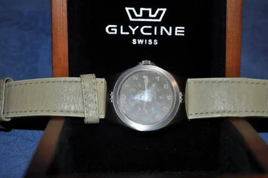 Vendo Glycine Combat, referencia 3854, cristal de zafiro, correa 24mm de piel original, movimiento cuarzo, esta en muy buen estado, con poco uso y va con su caja de madera.