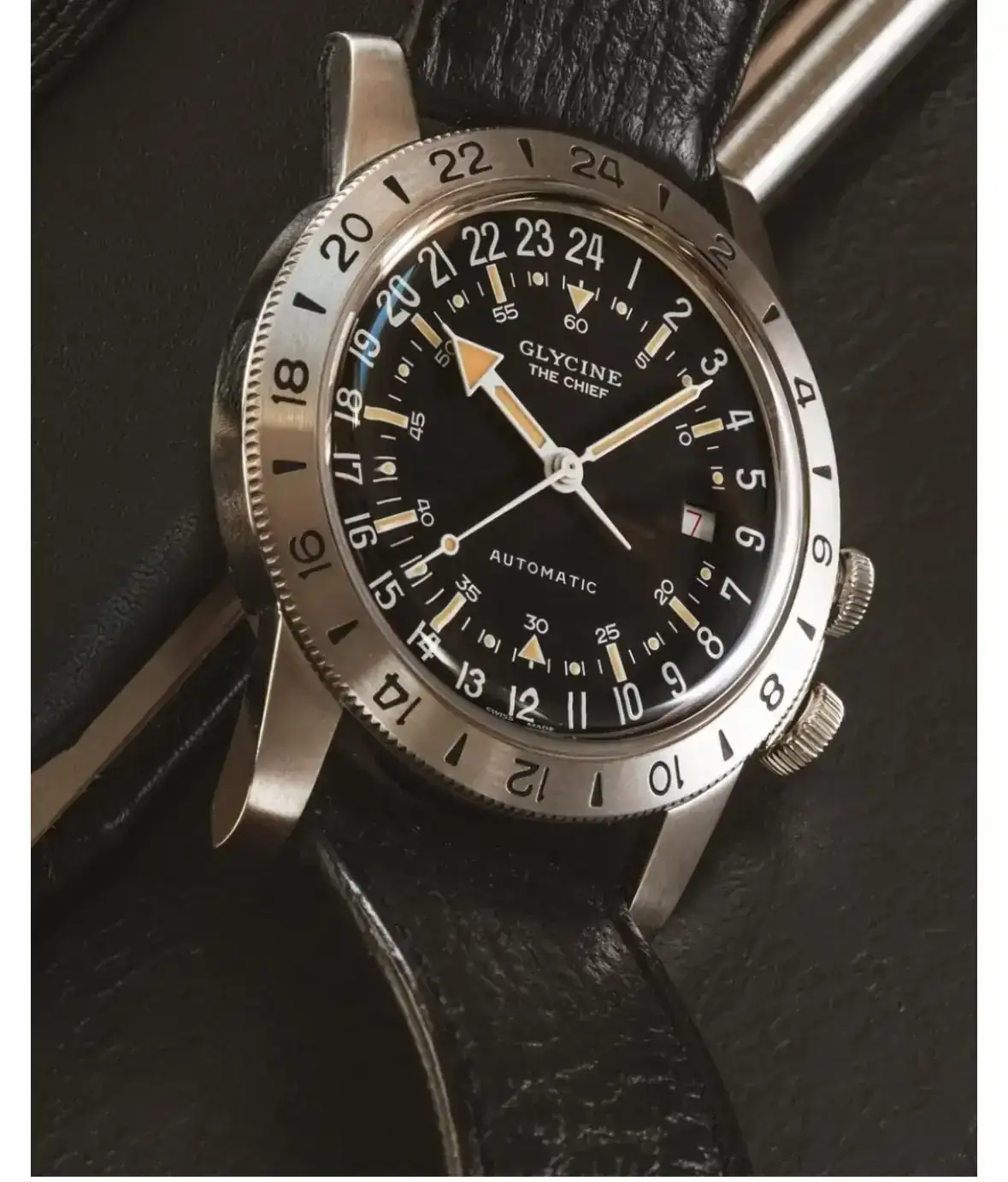 En 1953, Glycine fue la primera marca en fabricar un reloj de pulsera con función GMT, pensado para pilotos reales que necesitaban seguir dos husos horarios. El Airman, en mi opinión, no nació para lucirse, sino para trabajar.