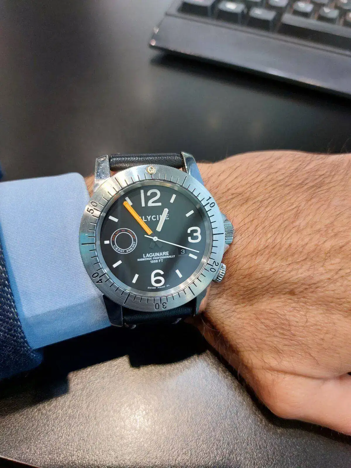 Hola compañeros quiero cambiar o vender este conocido Glycine Lagunare .Lleva aguja minutos naranja original de Glycine.
