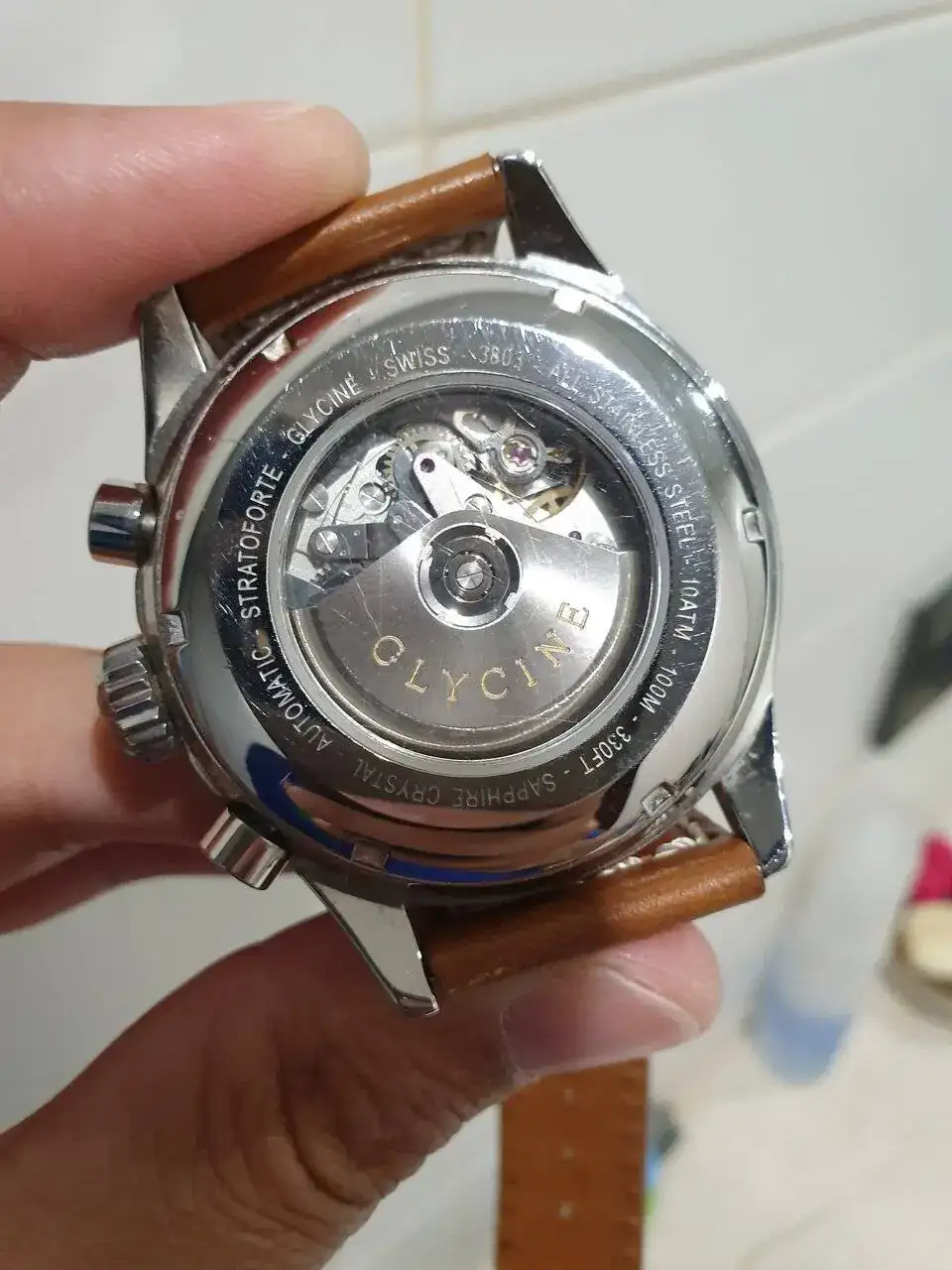 Vendo este Glycine Stratoforte en un estado bastante bueno. Tiene marcas de uso en la caja que con un leve pulido se solucionaría aunque en mi opinión no es necesario. El zafiro delantero impoluto y el trasero esta algo rayado. Dispongo de tarjeta de garantia (caducada) y el reloj tiene montada su correa original practicamente nueva con la hebilla firmada. Envío en caja genérica que se ve en las fotos. Vendo por saturación de relojes por lo que no me interesan cambio ni relojes como parte del pago.