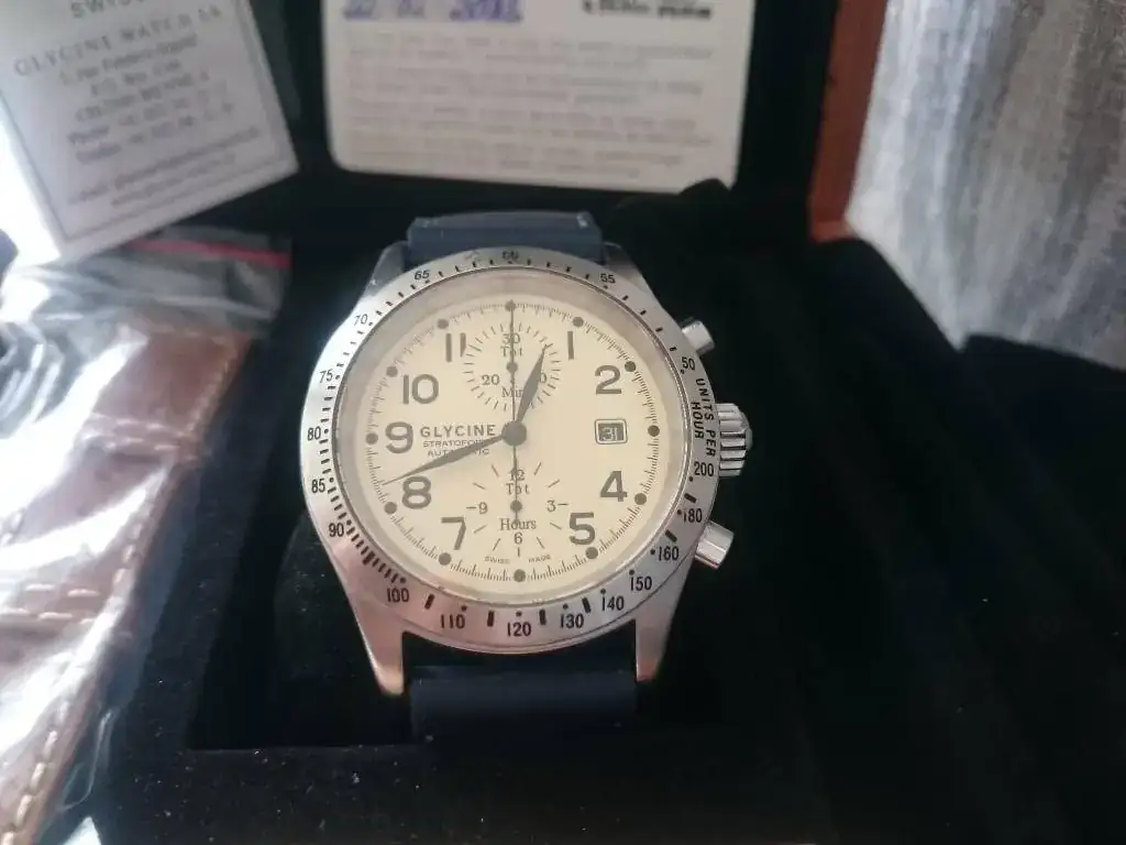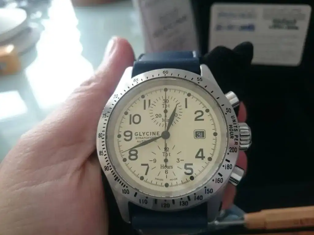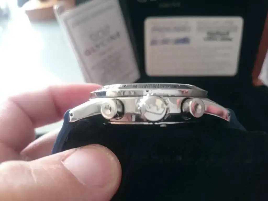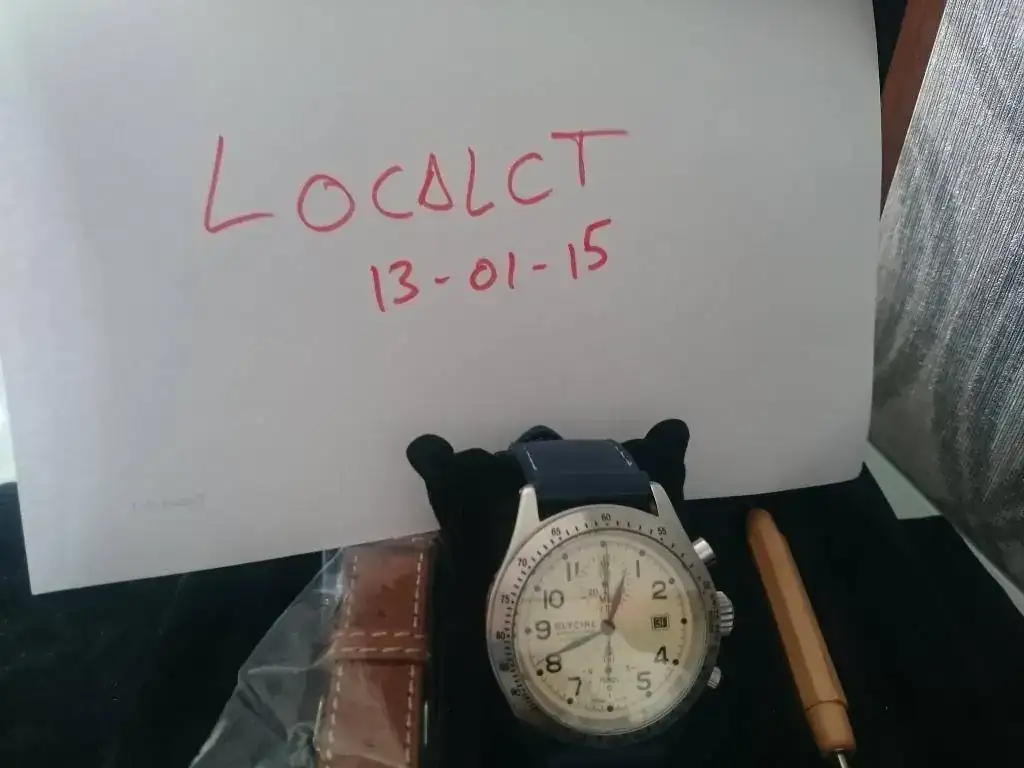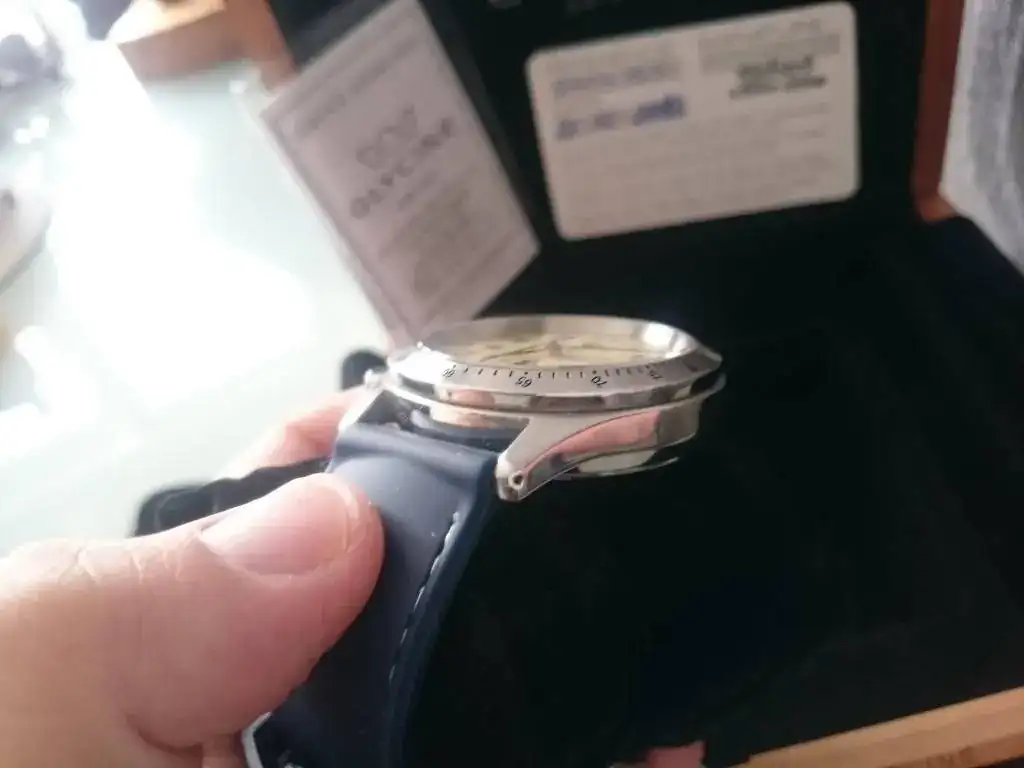 Buenos días, debido a un cambio realizado más pasta, he cogido este reloj que no termino de verlo en mi muñeca de juguete debido a sus medidas, por lo que lo pongo a la venta a un super precio, destacar que exteriormente el reloj está en un estado de 9 sobre 10 a mi entender , excepto algún pelillo, las correas originales la marrón esta sin estrenar y la azul con dos puestas, bueno paso a la ficha y fotos,
