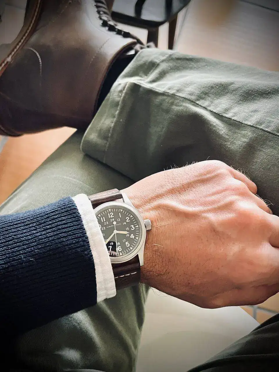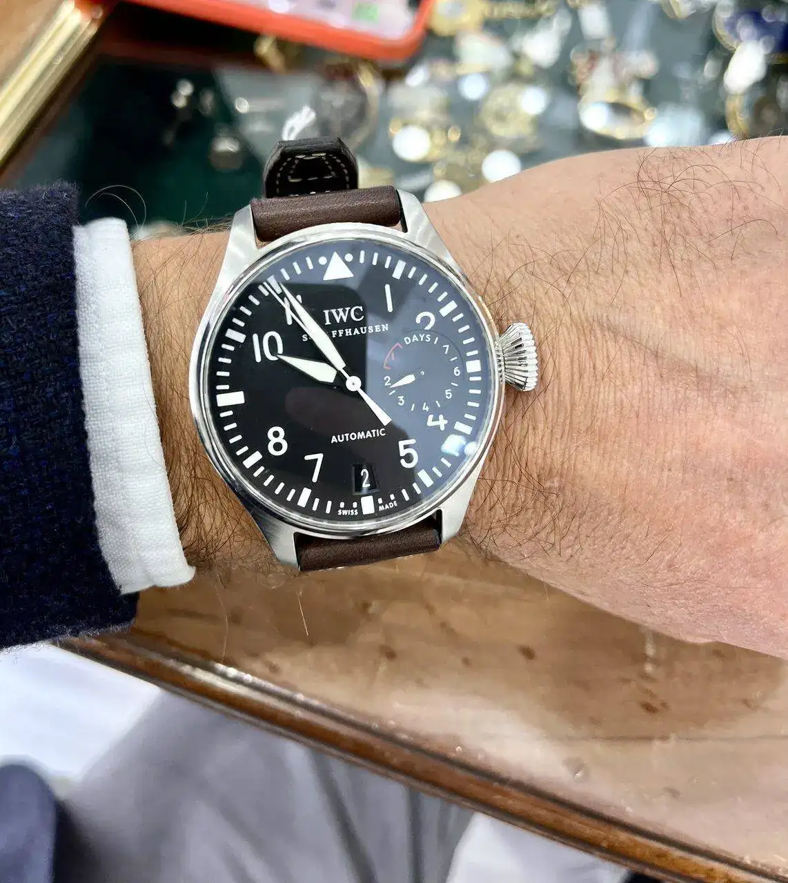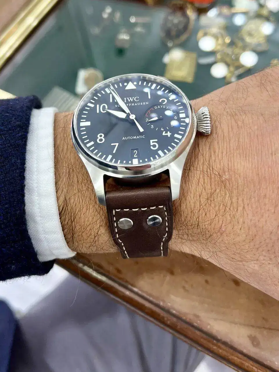 Más que en la foto desde arriba me ha parecido en la primera y en la última, la correa queda demasiado a ras con el límite de la muñeca para mi gusto. Personalmente como reloj más grande me gustan mucho el Pelagos y el Sinn U1.La verdad es que las asas no llegan a asomar son 56mm y mi muñeca son 60 de ancho, aunque en la roto típica desde arriba , se produce ese efecto de “asas voladoras”.