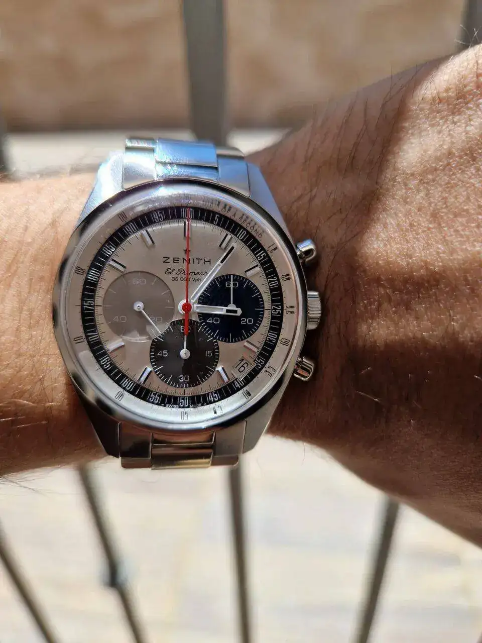 Respecto al hilo muy bonito Zenith el primero, un reloj con personalidad propia e historia, al que no le hace sombra casi ningún crono.